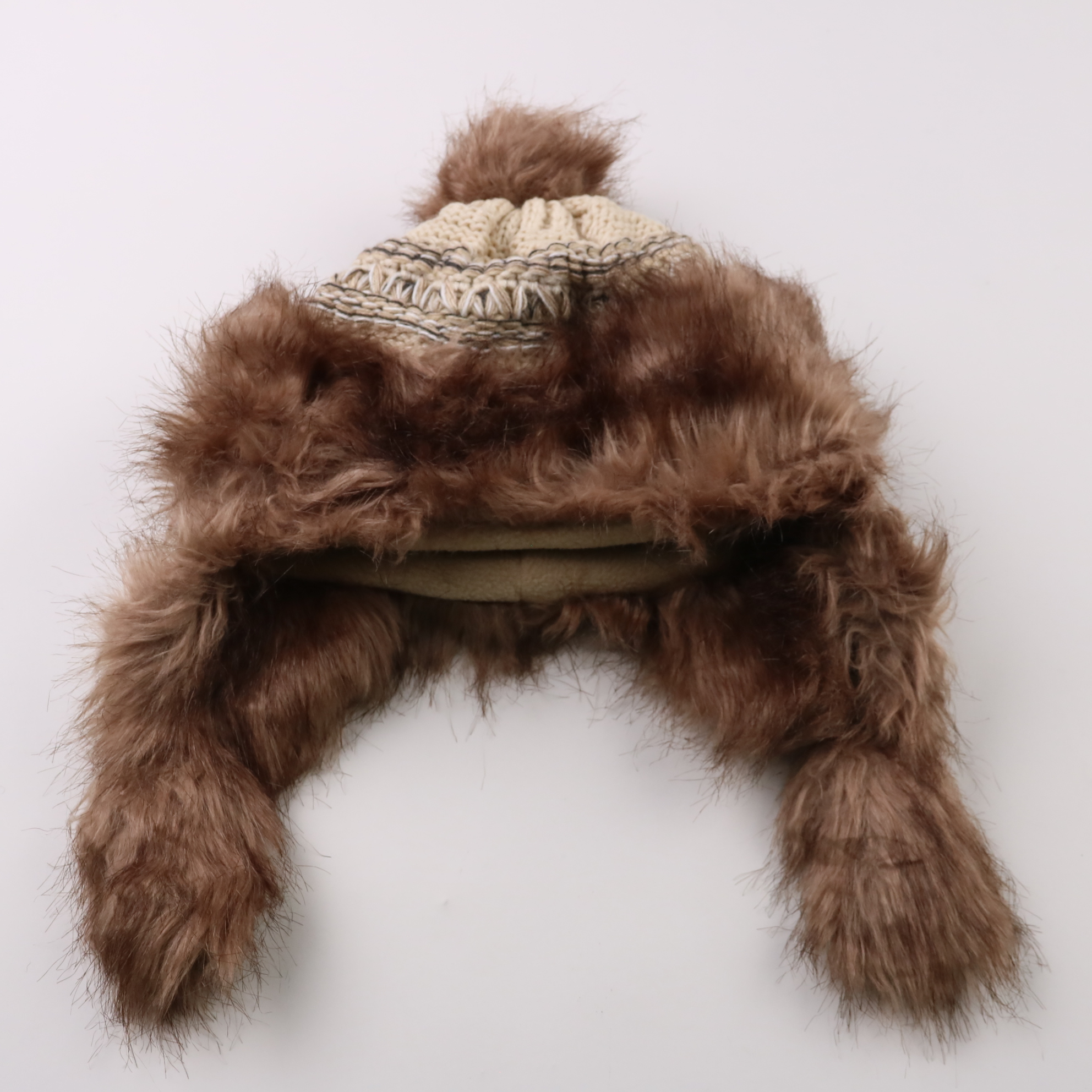 Тёплая шапка-ушанка без указанного бренда, с вязаным верхом и меховой отделкой. Подойдёт для зимних прогулок и поездок в холодную погоду, хорошо закрывает уши. Внутри мягкая подкладка, поэтому комфортно сидит и меньше продувается ветром.