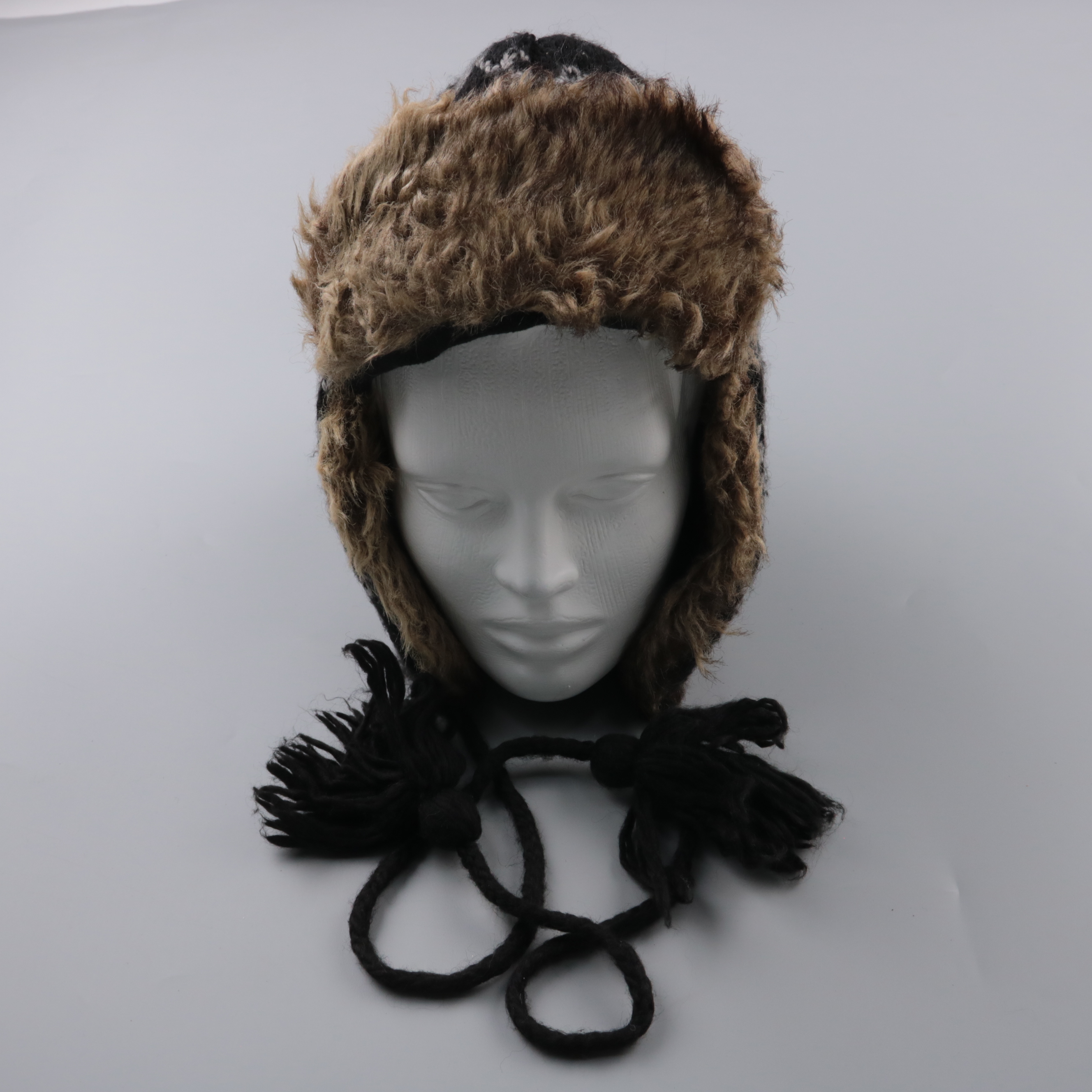 Зимняя шапка-ушанка Fcuk с узором и меховой отделкой, на завязках с кисточками. Подойдёт для холодной погоды и прогулок, хорошо закрывает уши. Мягкая подкладка добавляет комфорта и лучше удерживает тепло.