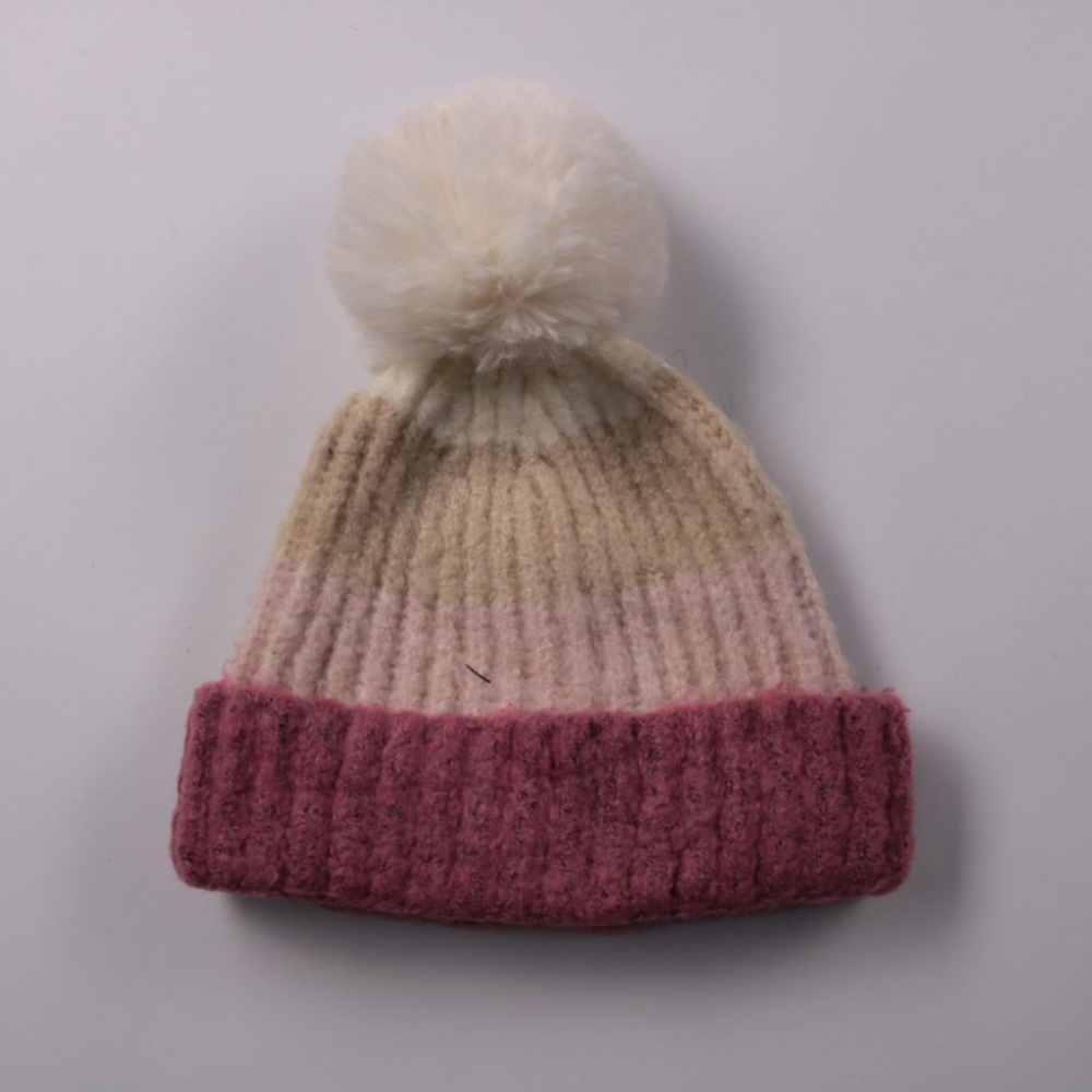 Вязаная шапка Johanna с помпоном и градиентной расцветкой (бежевый/розовый/бордовый). Подойдёт для зимних прогулок и повседневной носки, хорошо закрывает уши за счёт плотной резинки. Практичный вариант: тёплая и легко сочетается с верхней одеждой споко...