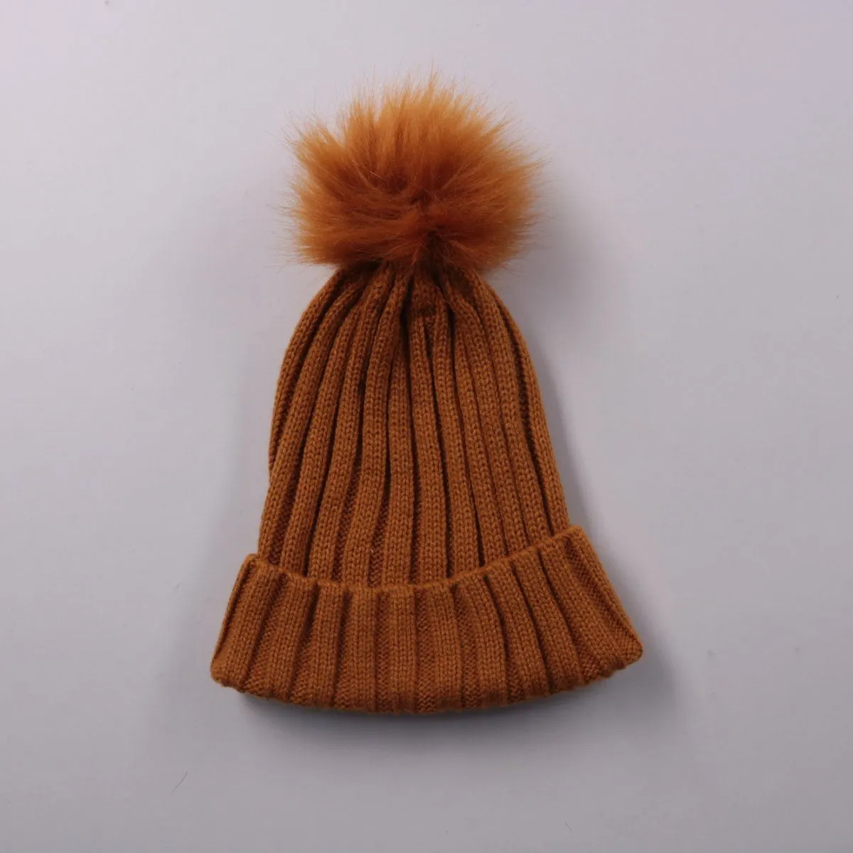 Вязаная шапка бини в рубчик с помпоном, без указания бренда. Подойдёт для зимних прогулок и повседневной носки, отворот хорошо закрывает уши. Тёплая и компактно помещается в карман или сумку.
