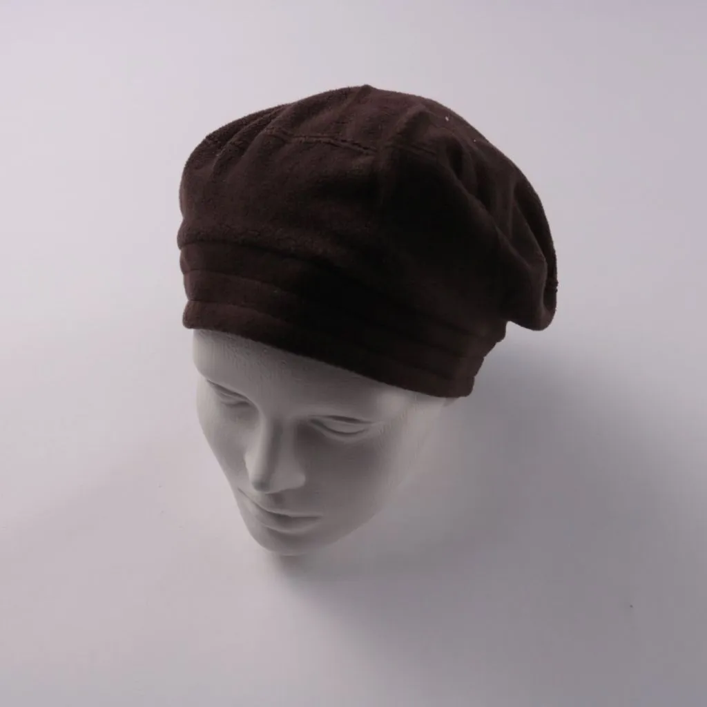 Шапка без указания бренда из мягкого плотного материала, коричневого цвета, со свободной посадкой. Подойдёт для повседневной носки в холодную погоду и хорошо сочетается с верхней одеждой в спокойных тонах. Удобно сидит на голове и закрывает уши за счёт...