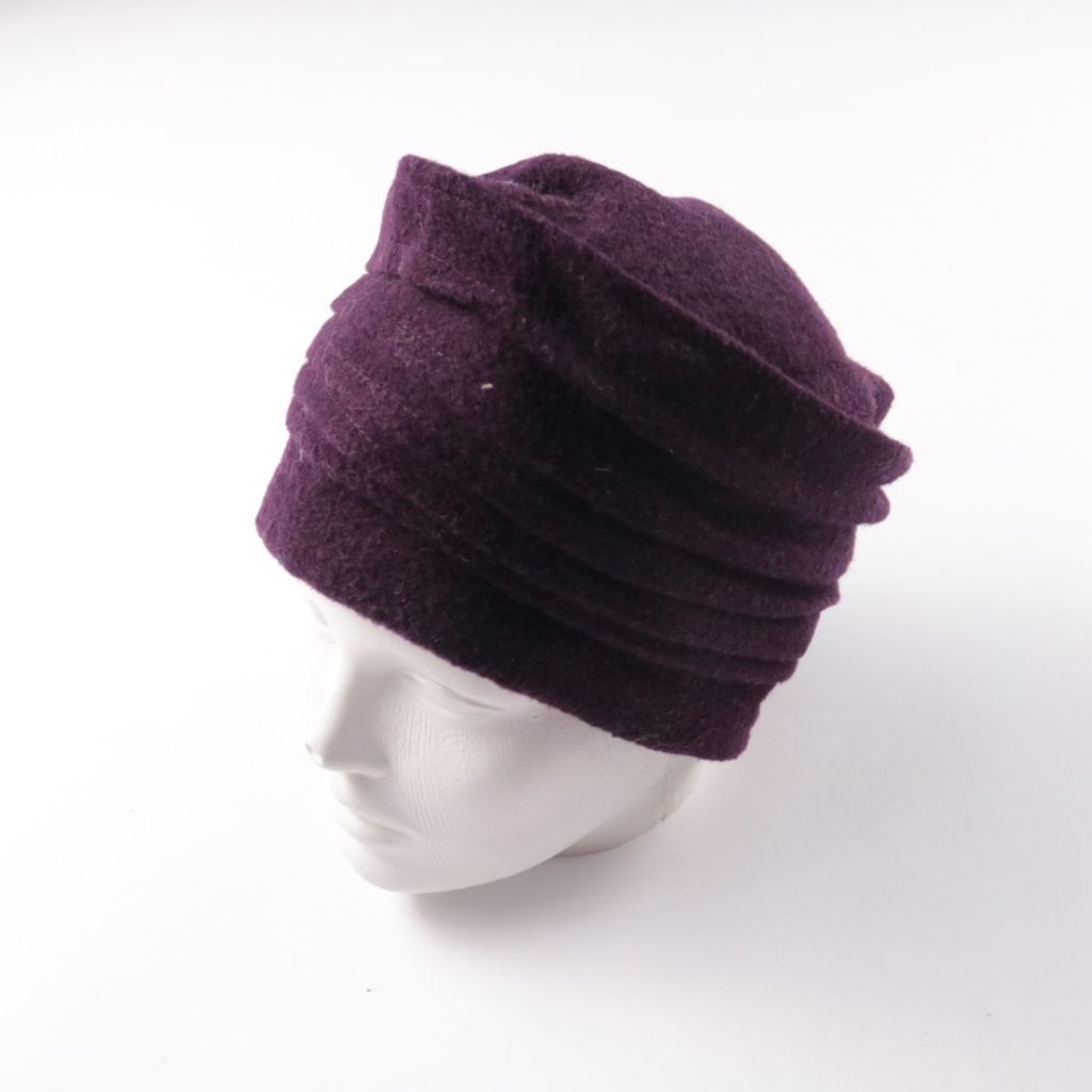 Фетровая шапка в стиле тюрбана/чалмы, без видимых логотипов, глубокого фиолетового цвета с драпировкой по окружности. Подойдёт для повседневных образов в прохладную погоду и хорошо держит форму. Удобна тем, что плотно сидит на голове и закрывает уши от...