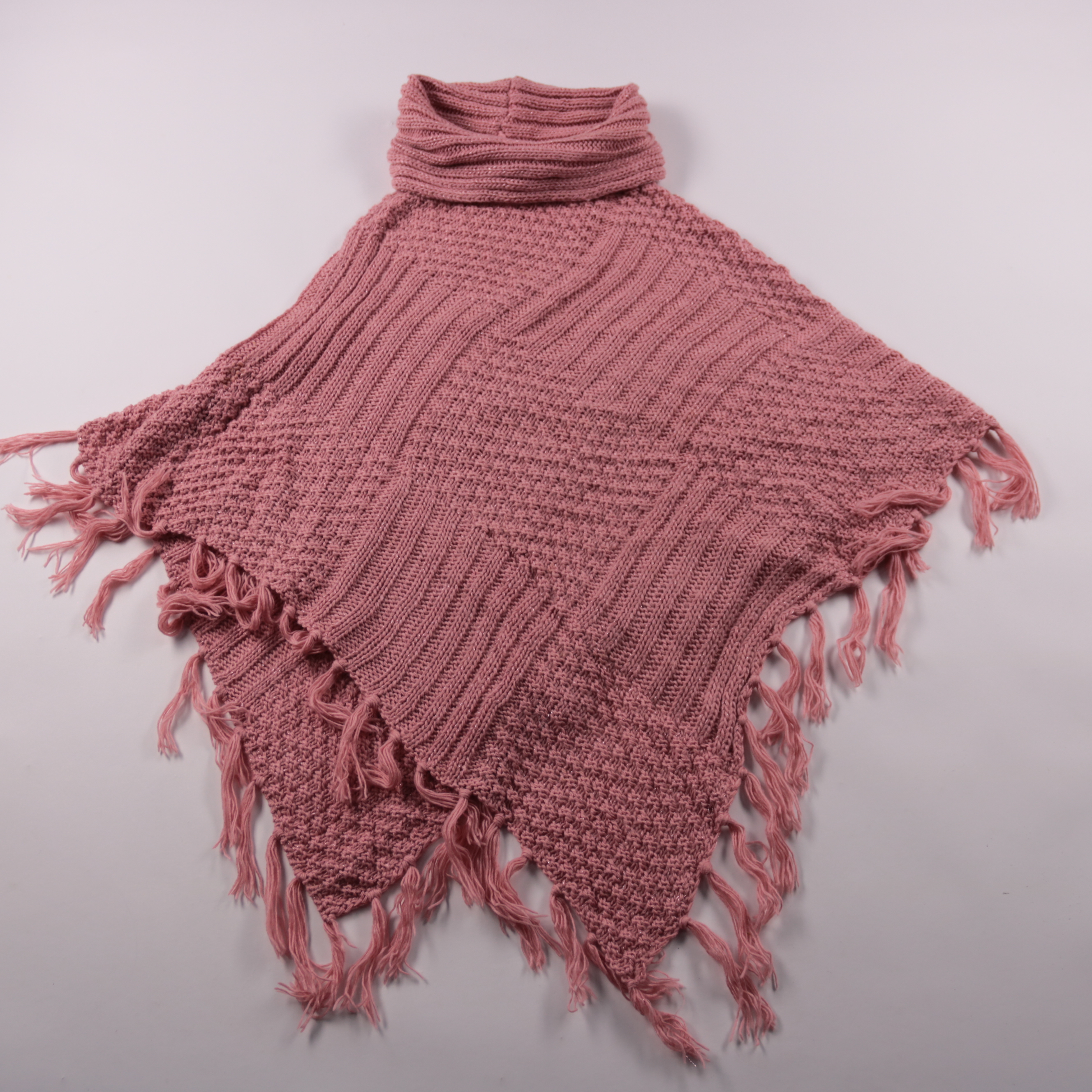 Вязаное пончо Laura Torelli пыльно-розового цвета с высоким воротником и бахромой по краю. Подойдёт для прогулок и поездок в прохладную погоду, легко сочетается с джинсами и базовыми вещами. Практично тем, что тёплое и комфортно накидывается поверх люб...