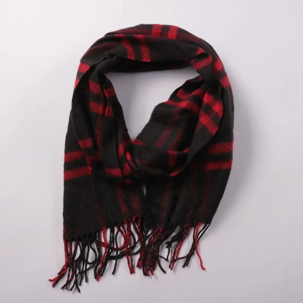 Шарф в клетку чёрно-красного цвета с бахромой, подойдёт и женщинам, и мужчинам. Уместен для повседневных образов в прохладную погоду и легко сочетается с однотонной верхней одеждой. Длинный формат позволяет завязать разными способами и лучше защищает шею от ветра.