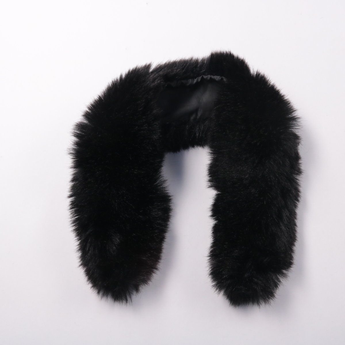 Меховой воротник чёрного цвета для верхней одежды. Подойдёт для куртки или пальто в холодную погоду и добавит тепла в зоне шеи. Практичен тем, что быстро освежает вид вещи и легко снимается/надевается.