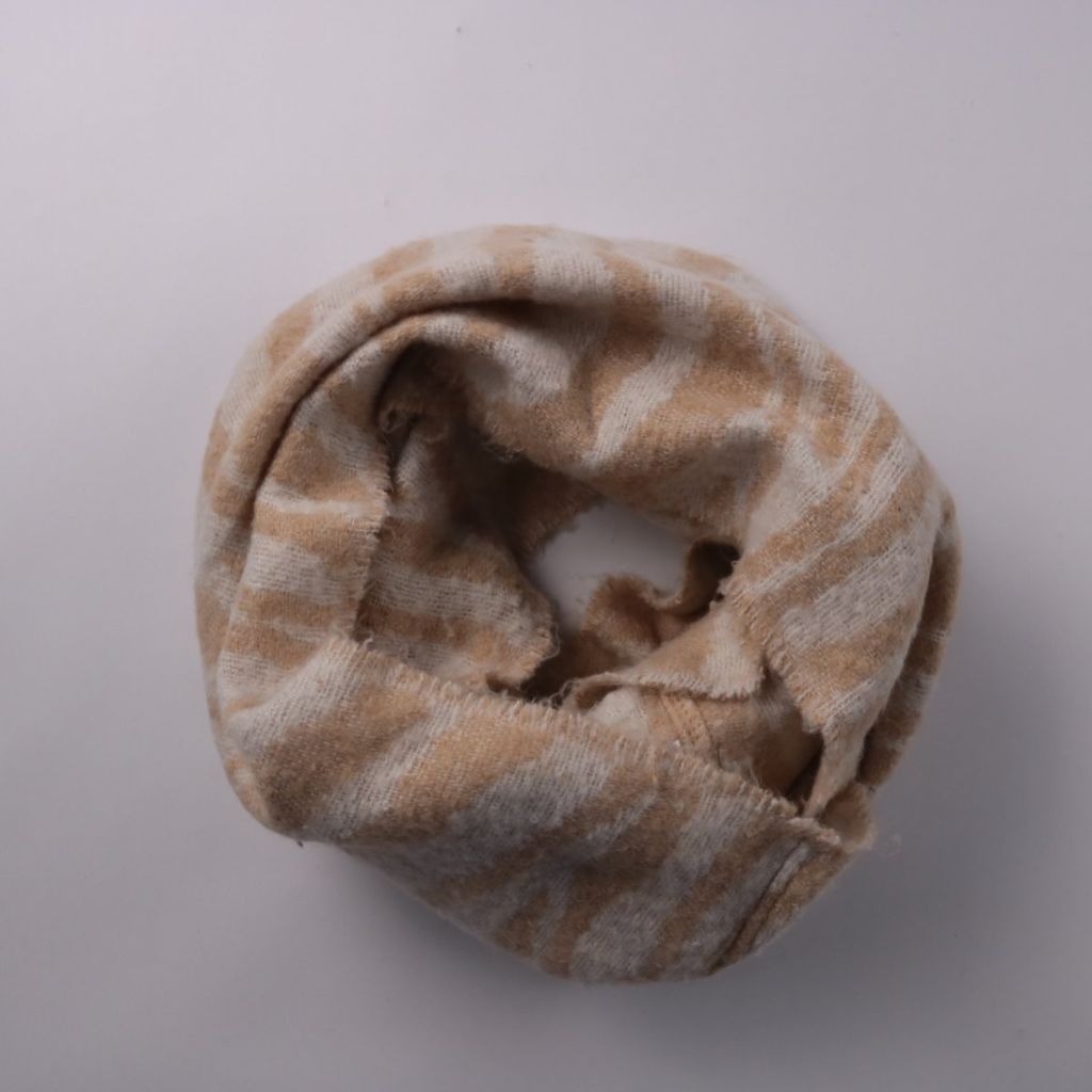 Полотенце с бежево-белым принтом под зебру, мягкое на ощупь. Подойдёт для ванной или кухни, а также как небольшое полотенце для рук. Смесовый состав делает его более износостойким и простым в уходе.