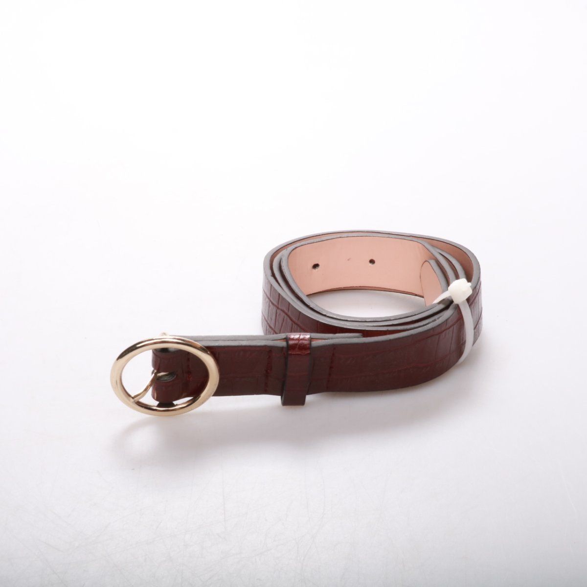 Ремень с тиснением под крокодила в бордовом цвете с овальной металлической пряжкой. Подойдёт к джинсам, брюкам или платью и добавит образу аккуратный акцент. Практичен тем, что легко регулируется по посадке и хорошо держит форму.