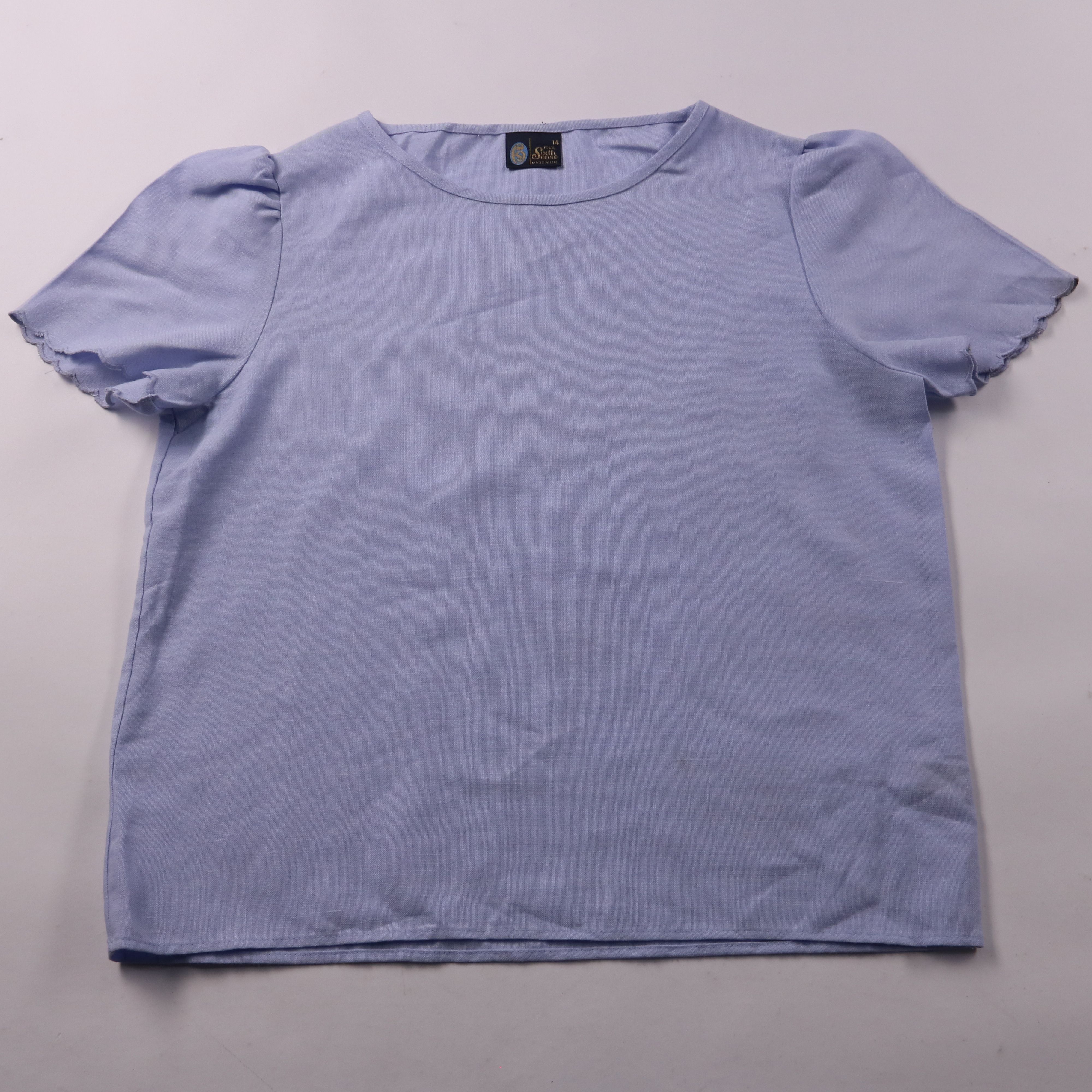 Детская блузка с короткими рукавами-фонариками и круглым вырезом. Подойдёт для школы, праздников и повседневных образов в тёплую погоду. Легко сочетается с юбками и брюками благодаря однотонному цвету.