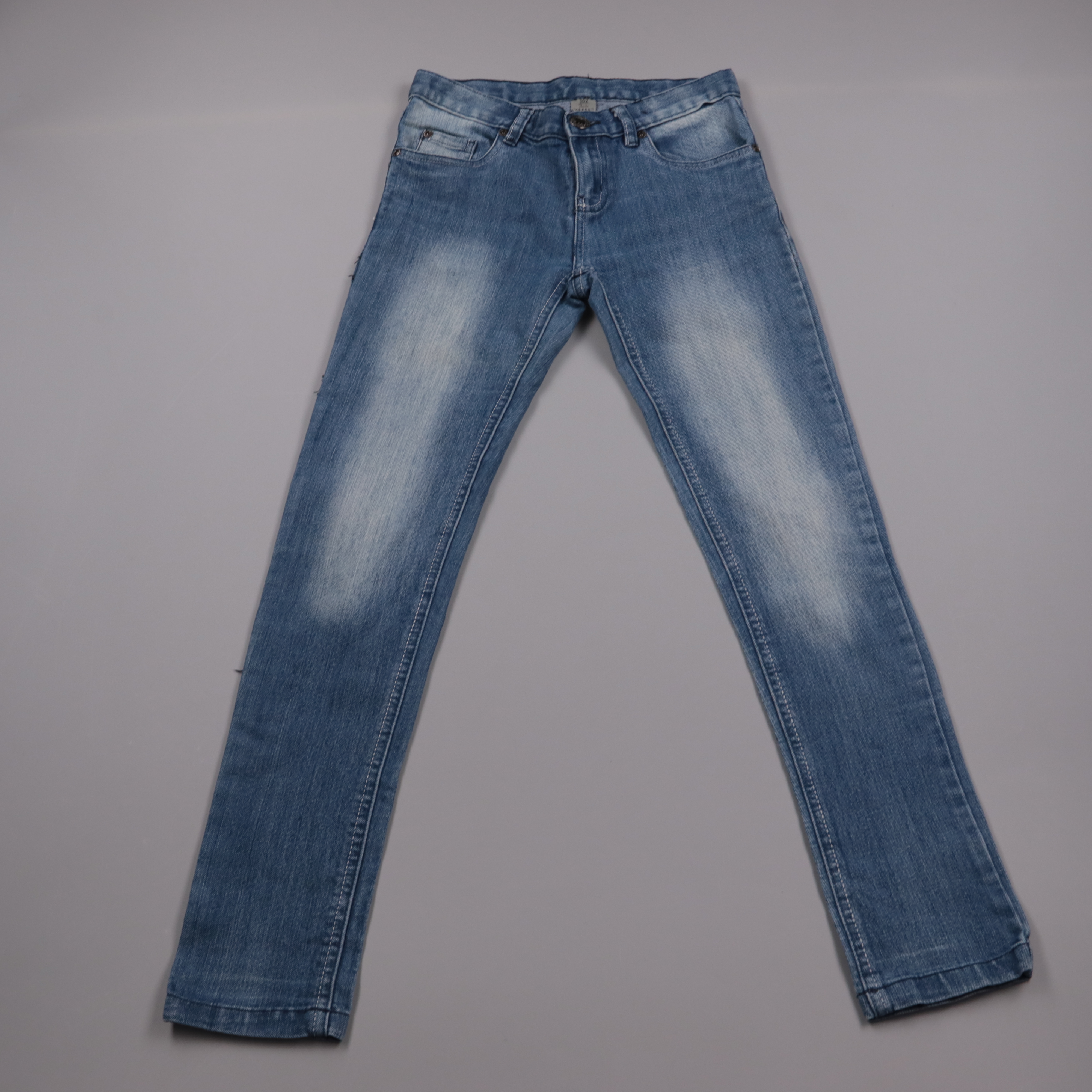 Джинсы XMAIL из синего денима с легкими высветлениями и классической посадкой на молнии и пуговице. Подойдут для школы и прогулок в любое время года, хорошо сочетаются с футболками и свитшотами. Ткань с добавлением эластана чуть тянется и не стесняет д...