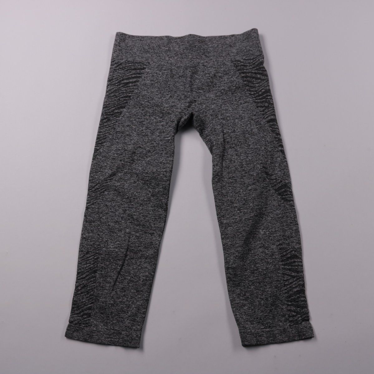 Детские легинсы серого меланжа, без видимого бренда, с эластичным поясом и фактурными вставками по бокам. Подойдут для повседневной носки, занятий спортом или как поддёва в прохладную погоду. Тянущаяся ткань не сковывает движения и удобно садится по фигуре.