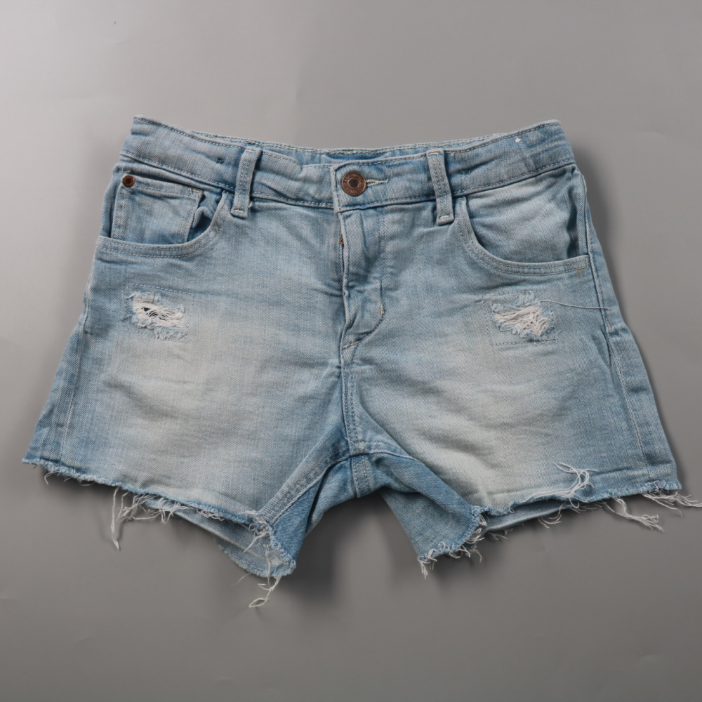 Джинсовые шорты H&M светло-голубого цвета с небольшими потертостями и необработанным краем. Подойдут для летних прогулок и отдыха, легко сочетаются с футболками и топами. Плотный деним со слегка тянущейся добавкой эластана не сковывает движения.
