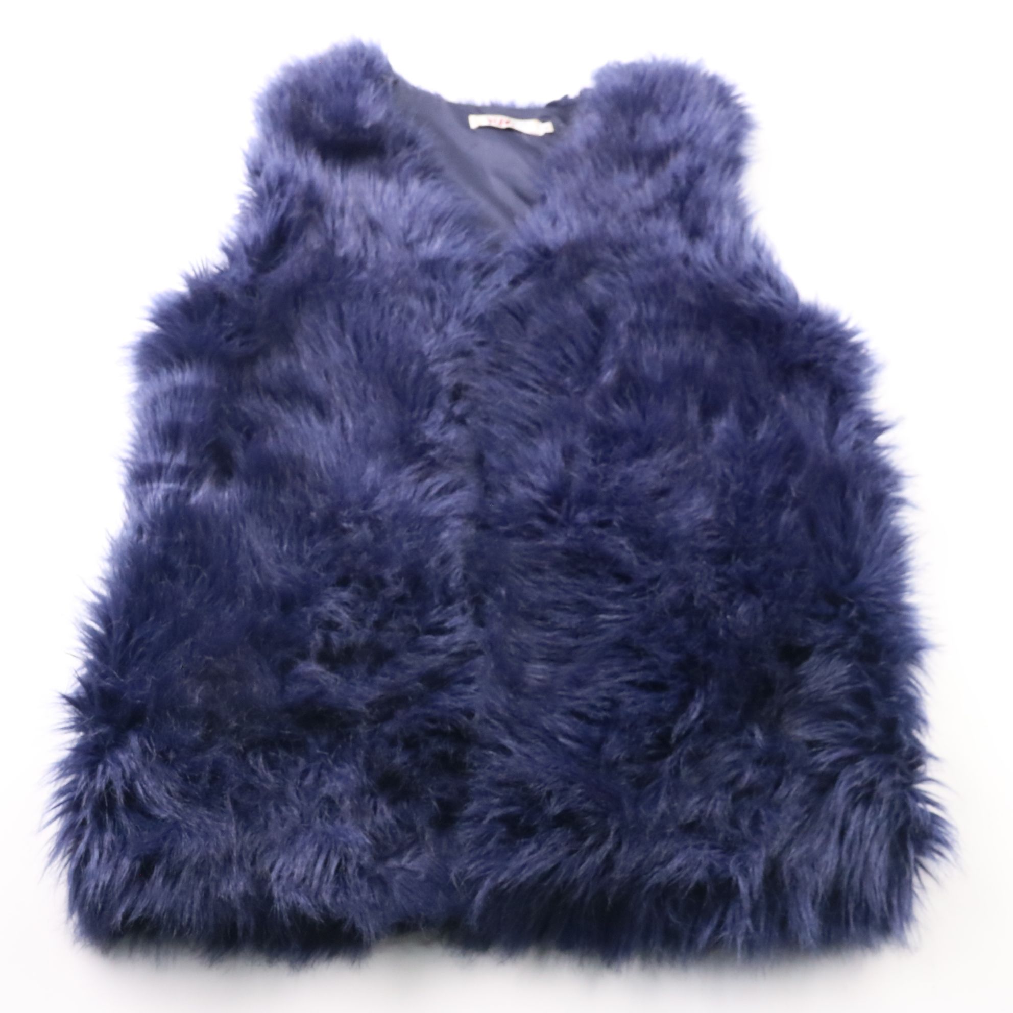Меховой жилет Portobello тёмно-синего цвета с мягким ворсом и подкладкой. Подойдёт для прогулок и праздников в прохладную погоду, удобно носить поверх водолазки или платья. Лёгкий и тёплый, не стесняет движений.