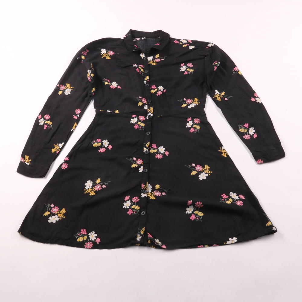 Платье C&A Here+There чёрного цвета с цветочным принтом и застёжкой на пуговицы по всей длине. Подойдёт для школы, прогулок и праздников, можно носить с колготками и кардиганом в прохладную погоду. Вискоза приятная к телу и хорошо драпируется, поэтому ...