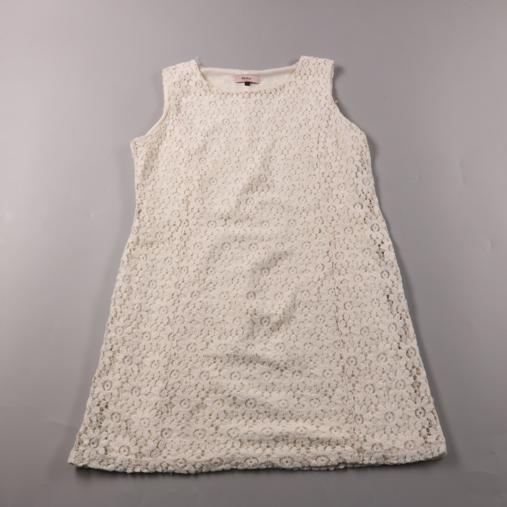 Платье Festa молочного цвета из кружевной ткани без рукавов. Подойдёт для лета и праздничных мероприятий, а также для фотосессий. Есть подкладка, поэтому комфортно носить и ткань не просвечивает.