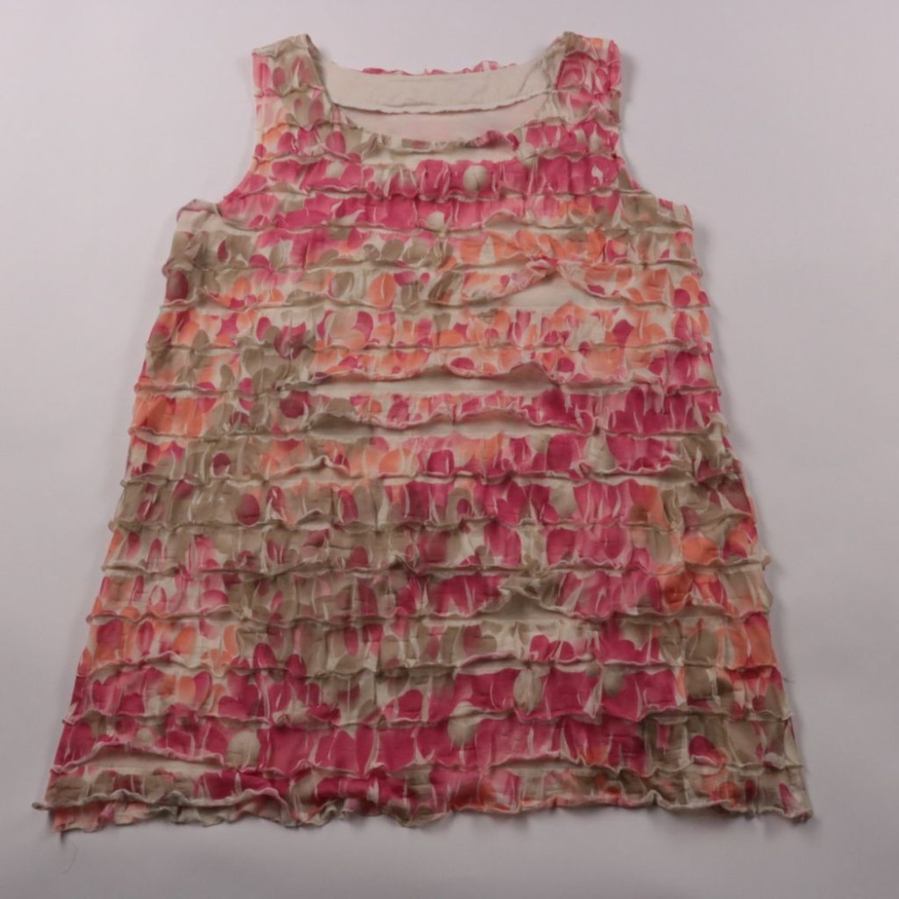 Детское платье для девочки без бренда, с ярким цветочным принтом и многослойными рюшами. Подойдёт для лета и тёплой погоды, на прогулку или праздничный выход. Лёгкая ткань и свободный крой не сковывают движения.