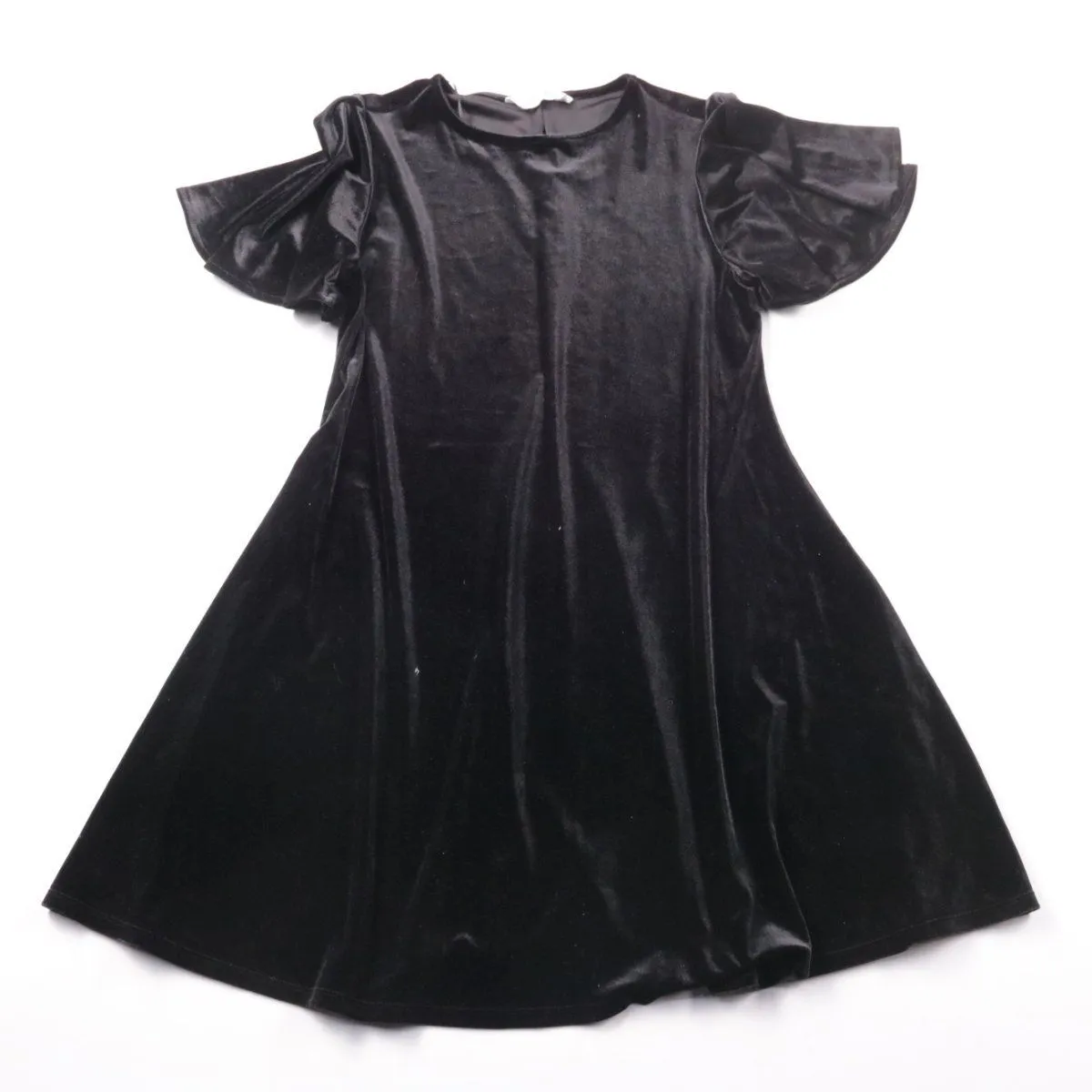 Бархатное платье Primark чёрного цвета с коротким рукавом-воланом и расклёшенным силуэтом. Подойдёт для праздников, утренников и семейных мероприятий, также можно носить с колготками в прохладную погоду. Ткань мягкая и эластичная, удобно сидит и не сковывает движения.