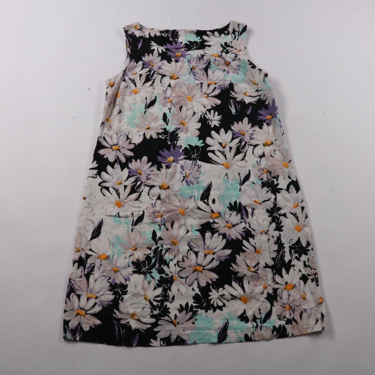 Платье F&F без рукавов с цветочным принтом на тёмном фоне. Подойдёт для лета, прогулок и праздников, лёгкая ткань хорошо пропускает воздух. Свободный крой не сковывает движения.