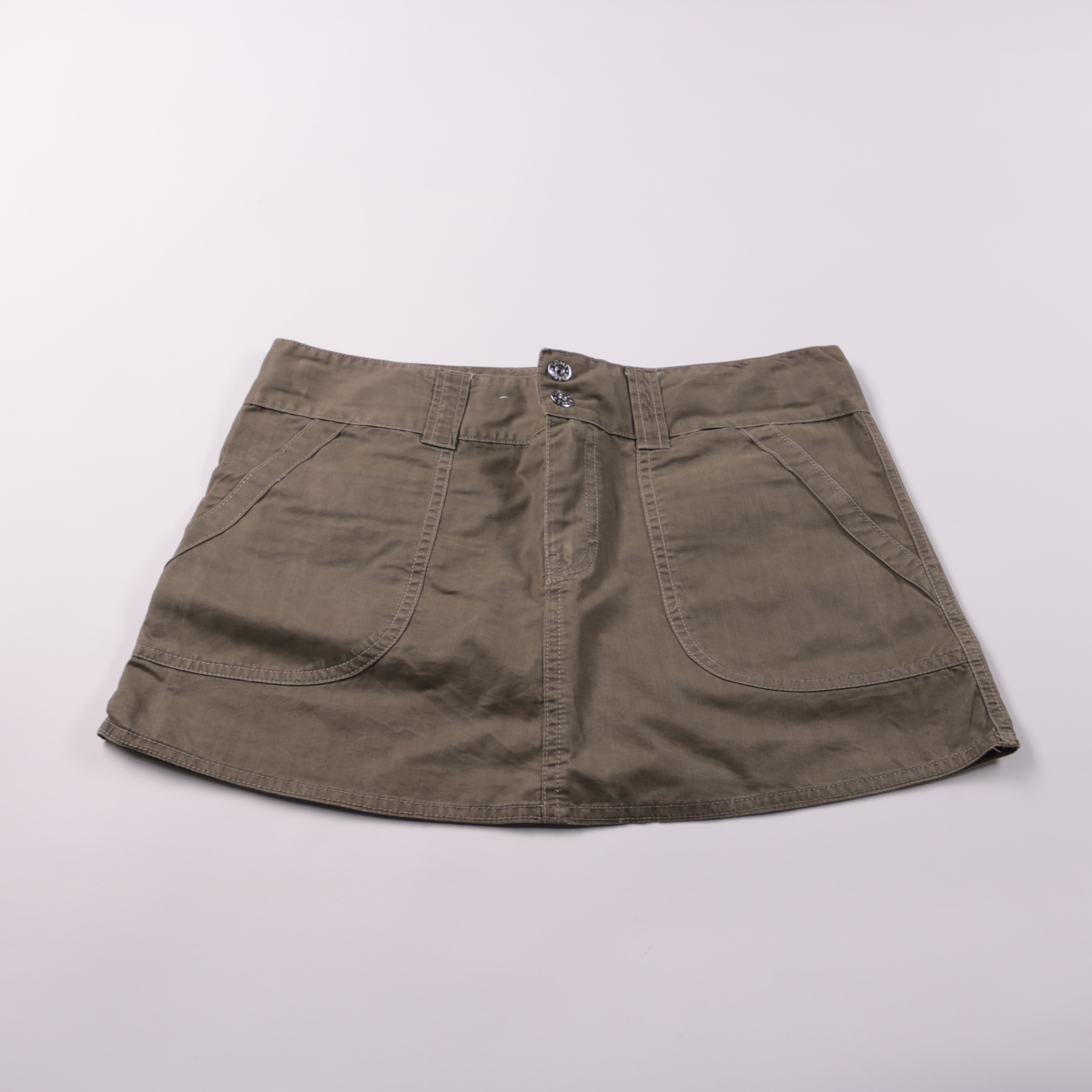 Юбка HEMA цвета хаки с удобной посадкой и большими накладными карманами спереди. Подойдёт для школы и прогулок в тёплую погоду, легко сочетается с футболками и рубашками. Плотная хлопковая ткань практична в носке и хорошо переносит частые стирки.