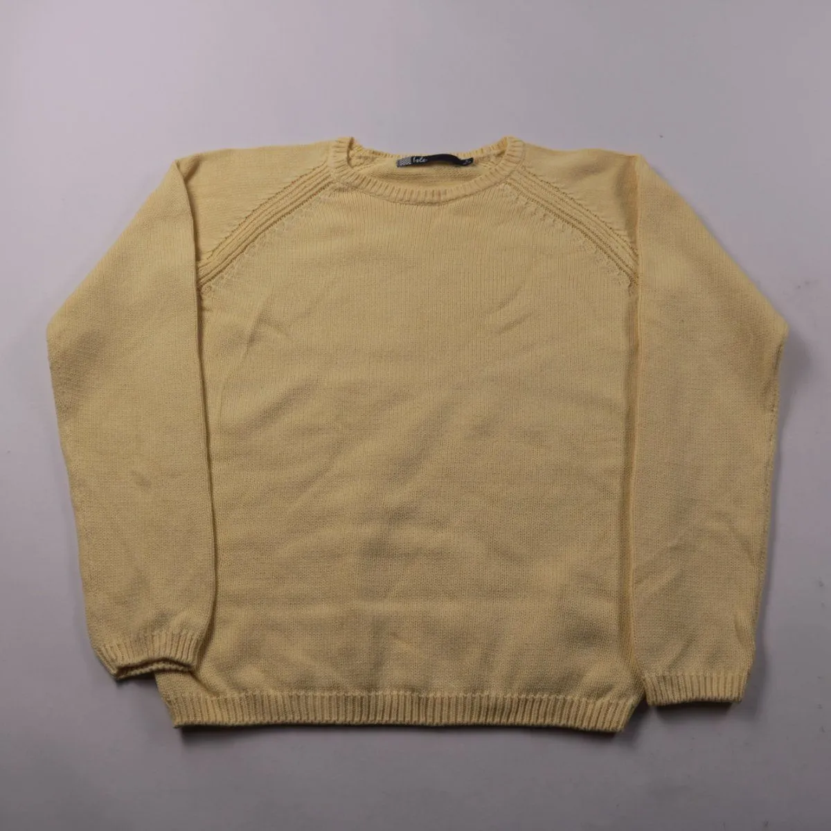 Вязаный свитер Elle светло-жёлтого цвета с круглым вырезом и рукавом реглан. Подойдёт для школы и прогулок в прохладную погоду, комфортно носить как самостоятельный слой. Натуральный хлопок хорошо дышит и приятен к телу.
