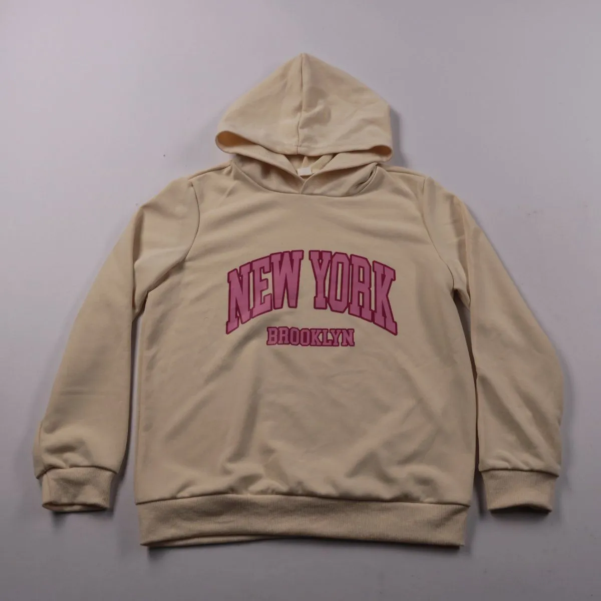 Худи-толстовка с капюшоном и принтом «NEW YORK / BROOKLYN», без указанного бренда. Подойдёт для школы, прогулок и повседневной носки в прохладную погоду. Практичный материал легко стирается и быстро сохнет.