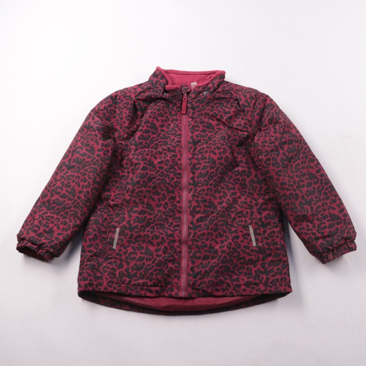 Детская демисезонная куртка MANGUUN mini бордового цвета с леопардовым принтом, на молнии. Есть капюшон и светоотражающие вставки на карманах — удобно для прогулок в городе. Внутри мягкая подкладка, куртка быстро сохнет и проста в уходе.