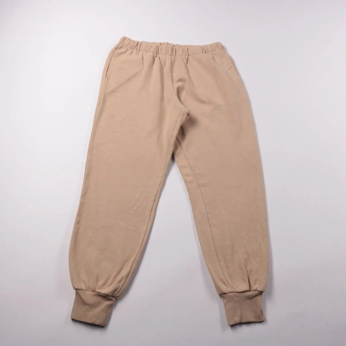 Брюки H&M Basic светло-бежевого цвета из мягкого футера с тёплой изнанкой. Подойдут для школы, прогулок и дома в прохладную погоду, пояс на резинке и манжеты снизу держат посадку. Материал практичный и несложный в уходе.