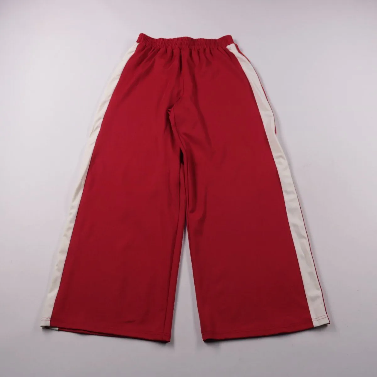 Спортивные брюки George красного цвета с белыми лампасами по бокам и эластичным поясом. Подойдут для физкультуры, прогулок и повседневной носки. Материал быстро сохнет и не сковывает движения.