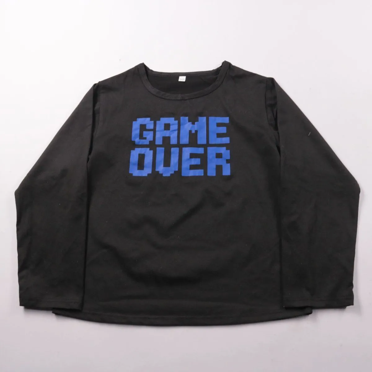 Детская кофта с длинным рукавом чёрного цвета с принтом «GAME OVER» спереди. Подойдёт для школы, прогулок и повседневной носки в прохладную погоду. Эластичный материал хорошо тянется и не сковывает движения.