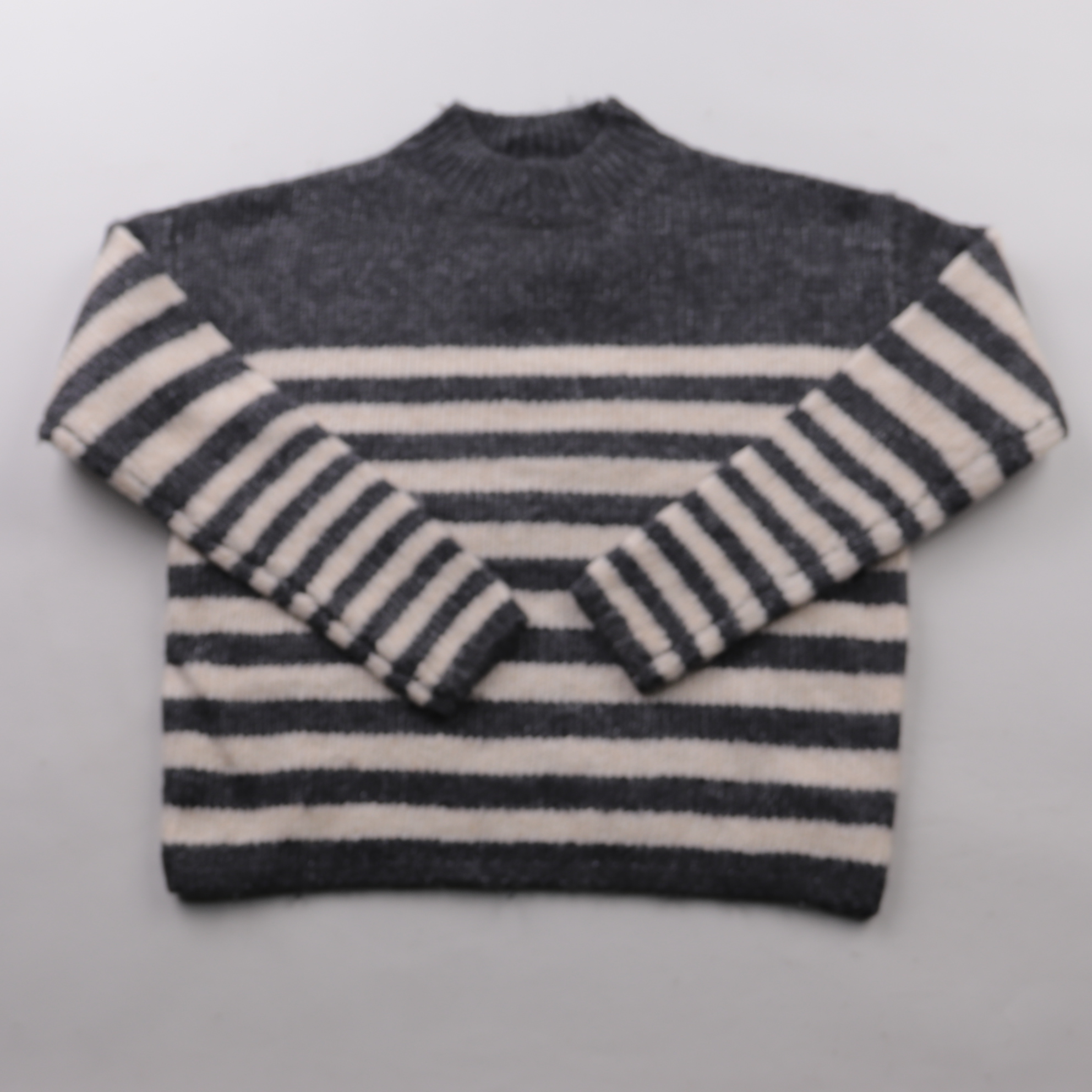 Вязаный свитер Primark для мальчика в серо-белую полоску, с круглой горловиной и длинным рукавом. Подойдёт для школы и повседневной носки в прохладную погоду, удобно сочетать с джинсами или брюками. Мягкая пряжа и плотная вязка хорошо держат тепло.