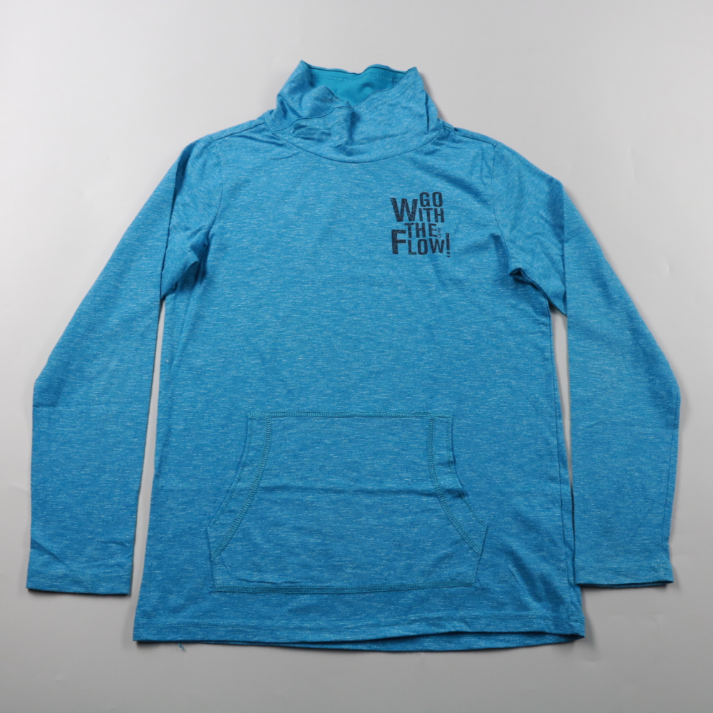 Толстовка S.Oliver голубого цвета с воротником-стойкой, принтом на груди и карманом-кенгуру. Подойдёт для школы, прогулок и повседневной носки в прохладную погоду. Смесовый состав с хлопком хорошо дышит и проще в уходе.