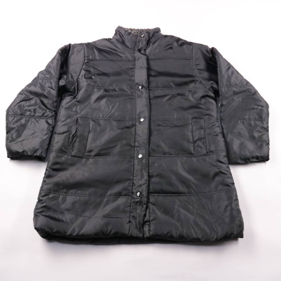 Стёганая куртка для мальчика без бренда, чёрного цвета, на кнопках и с воротником-стойкой. Подойдёт для прогулок и в школу в прохладную погоду весной и осенью. Материал из полиэстера практичный и легко чистится.