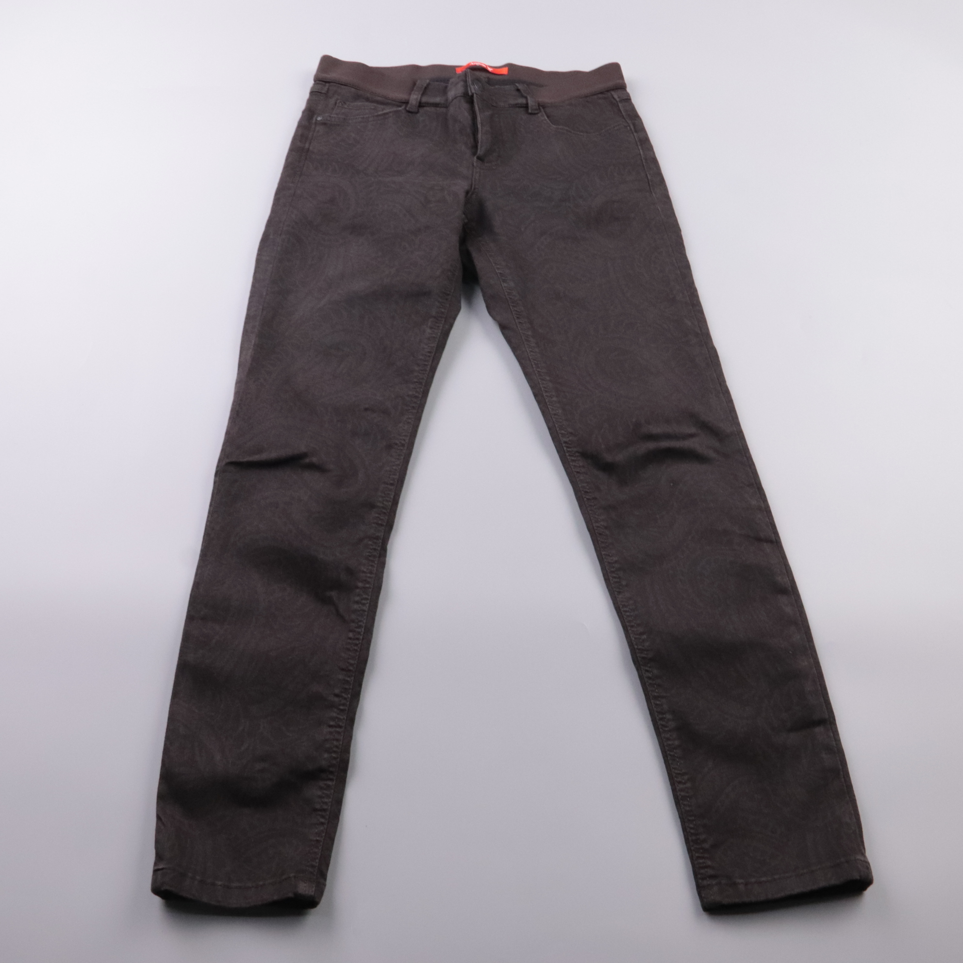 Мужские брюки Angels в тёмно-коричневом (почти чёрном) цвете с едва заметным узором, посадка на поясе с петлями под ремень и застёжкой на молнию. Подойдут для повседневных образов и офиса в стиле casual, легко сочетаются с рубашкой или свитером. Практи...
