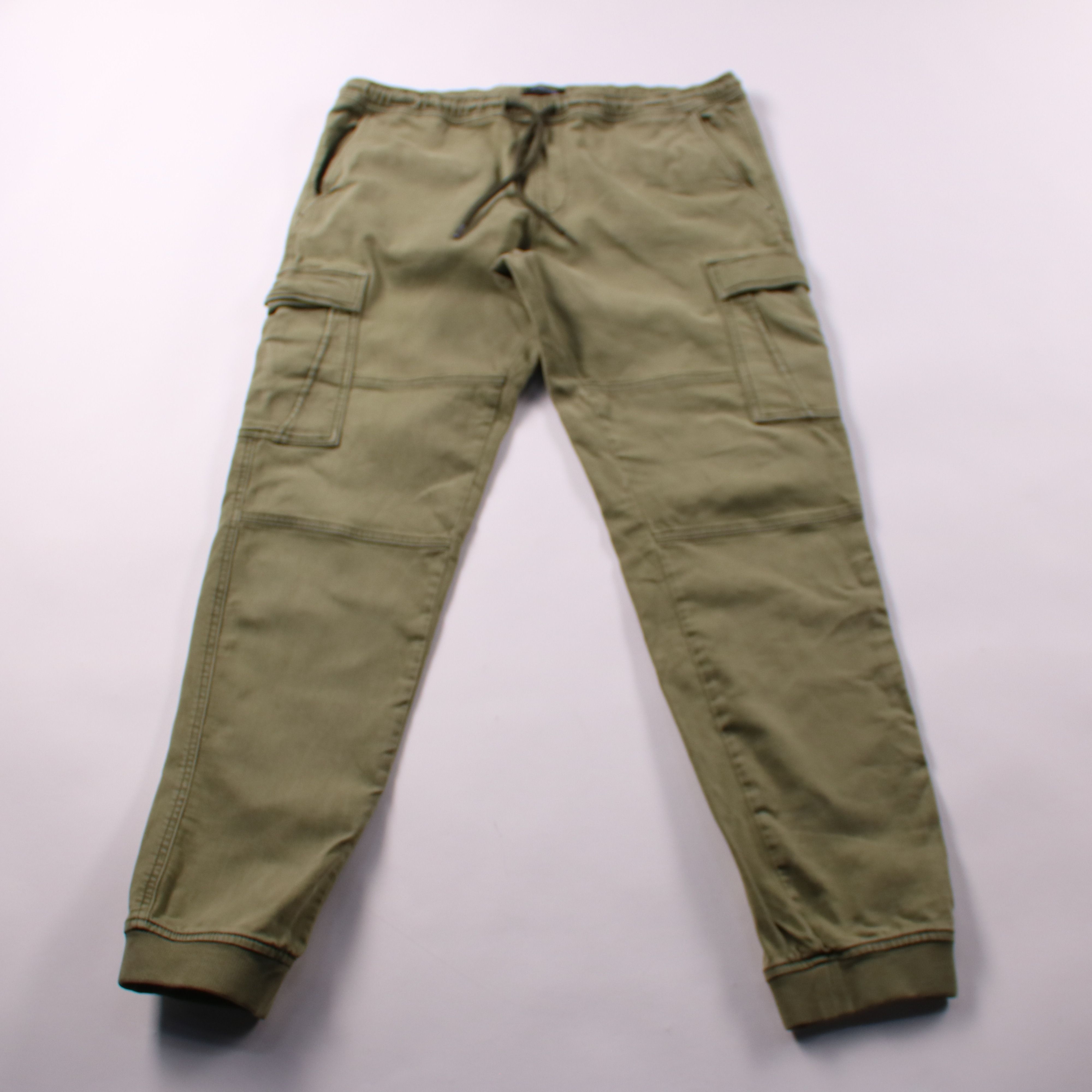 Мужские брюки-карго Clockhouse Slim в оливковом цвете с эластичным поясом на шнурке и накладными карманами по бокам. Подойдут для повседневной носки и прогулок в городе, когда нужны удобство и свобода движений. Практичный плюс — хлопковая ткань с добав...