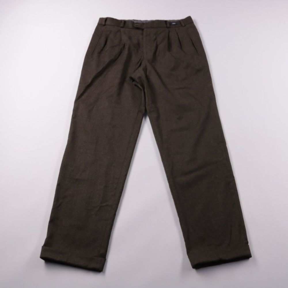 Классические мужские брюки Konen из шерсти с добавлением эластана, тёмно-коричневого цвета, с защипами и отворотами по низу. Подойдут для офиса и повседневных образов в прохладную погоду. Шерстяная ткань держит форму и комфортно носится, а эластан даёт...