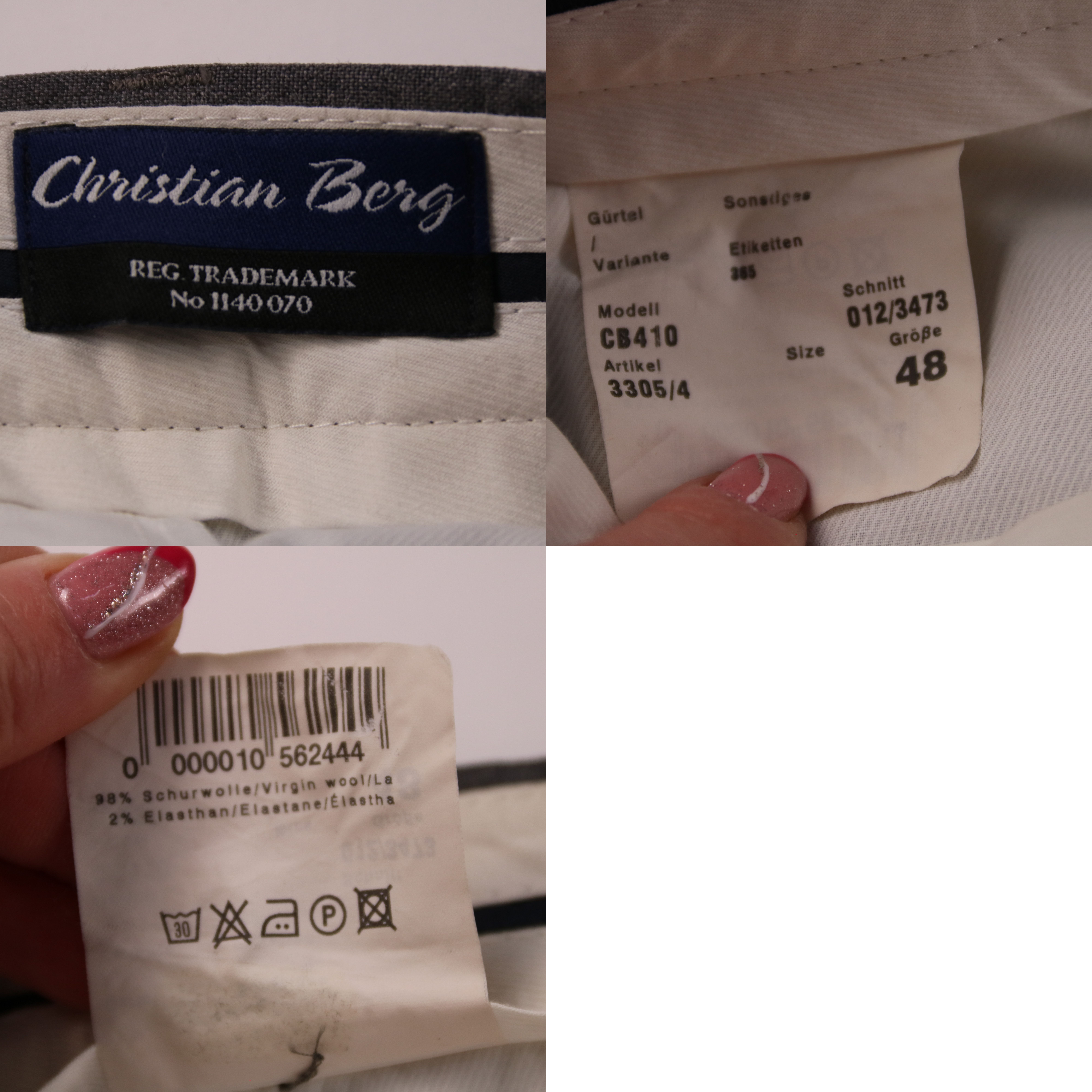 Мужские классические брюки Christian Berg из тонкой шерсти в тёмно-сером цвете, подойдут для офиса и деловых встреч. Модель со стрелками и защипами спереди хорошо сочетается с рубашкой и пиджаком. Практичный плюс — ткань с добавлением эластана меньше м...