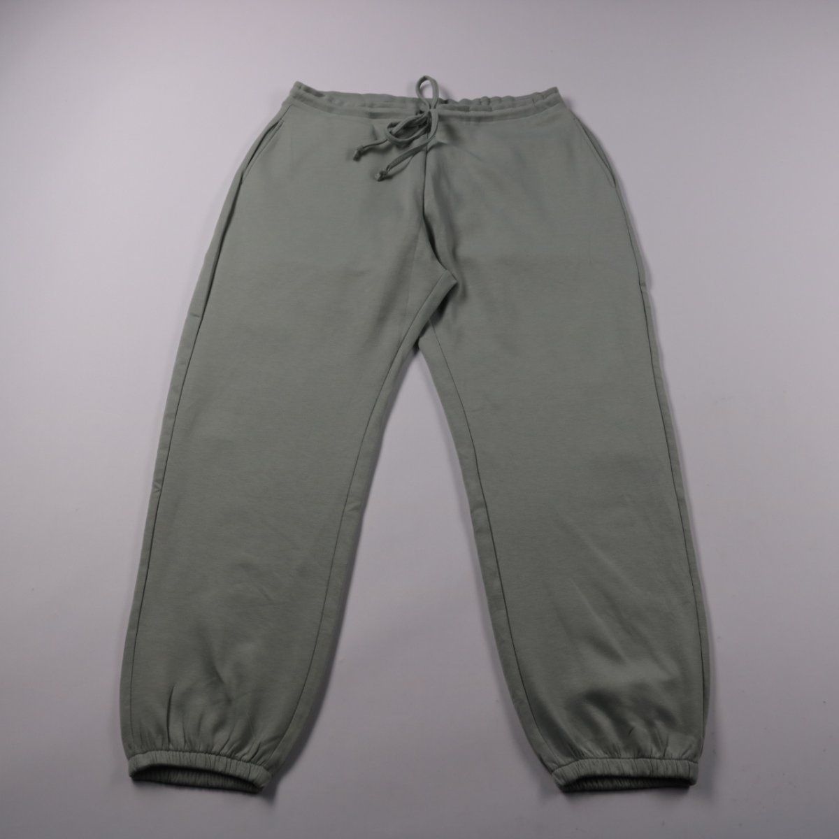 Спортивные брюки-джоггеры без бренда в оливково-зелёном цвете, с эластичным поясом и шнурком. Подойдут для тренировок, прогулок и домашней носки, низ на резинке держит форму и не задирается. Практичны в уходе и удобно садятся по талии за счёт регулировки.