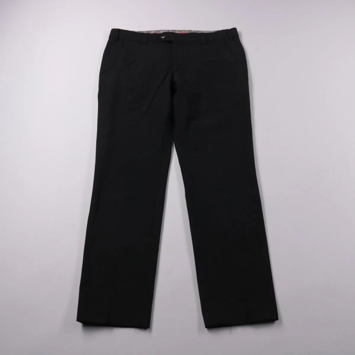 Классические чёрные брюки не указано, модель ROMA, аккуратного прямого кроя с поясом под ремень. Подойдут для офиса и мероприятий, легко сочетаются с рубашкой или джемпером. Практичный плюс — ткань со стрейчем (есть эластан), поэтому сидят комфортнее в движении.