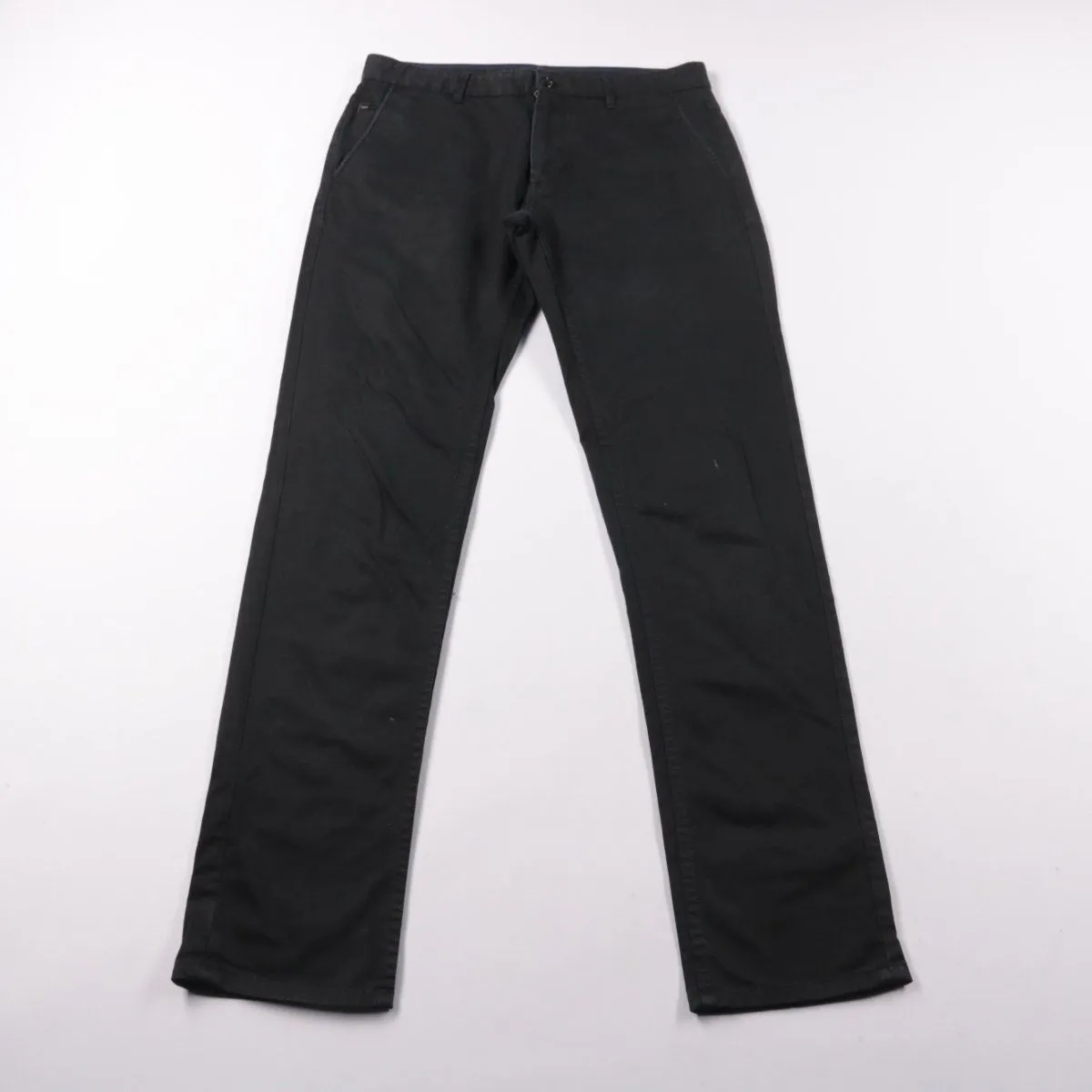 Мужские чёрные брюки из хлопка с небольшим добавлением эластана. Подойдут для повседневной носки и офиса в сочетании с рубашкой или футболкой. Практичный плюс — ткань тянется и не сковывает движения.