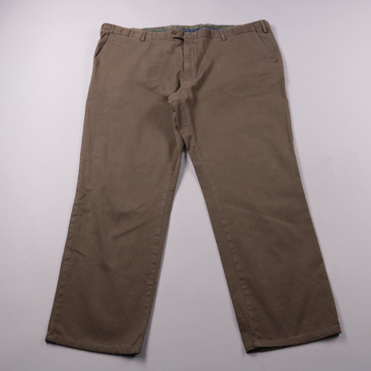 Мужские брюки не указано в бежево-коричневом цвете, прямого кроя с застёжкой на молнию и пуговицу. Подойдут для повседневной носки и офиса в демисезон, ткань с добавлением эластана даёт немного тянущуюся посадку. Практичный вариант: легко сочетать с рубашками и свитерами, материал не слишком мнётся.