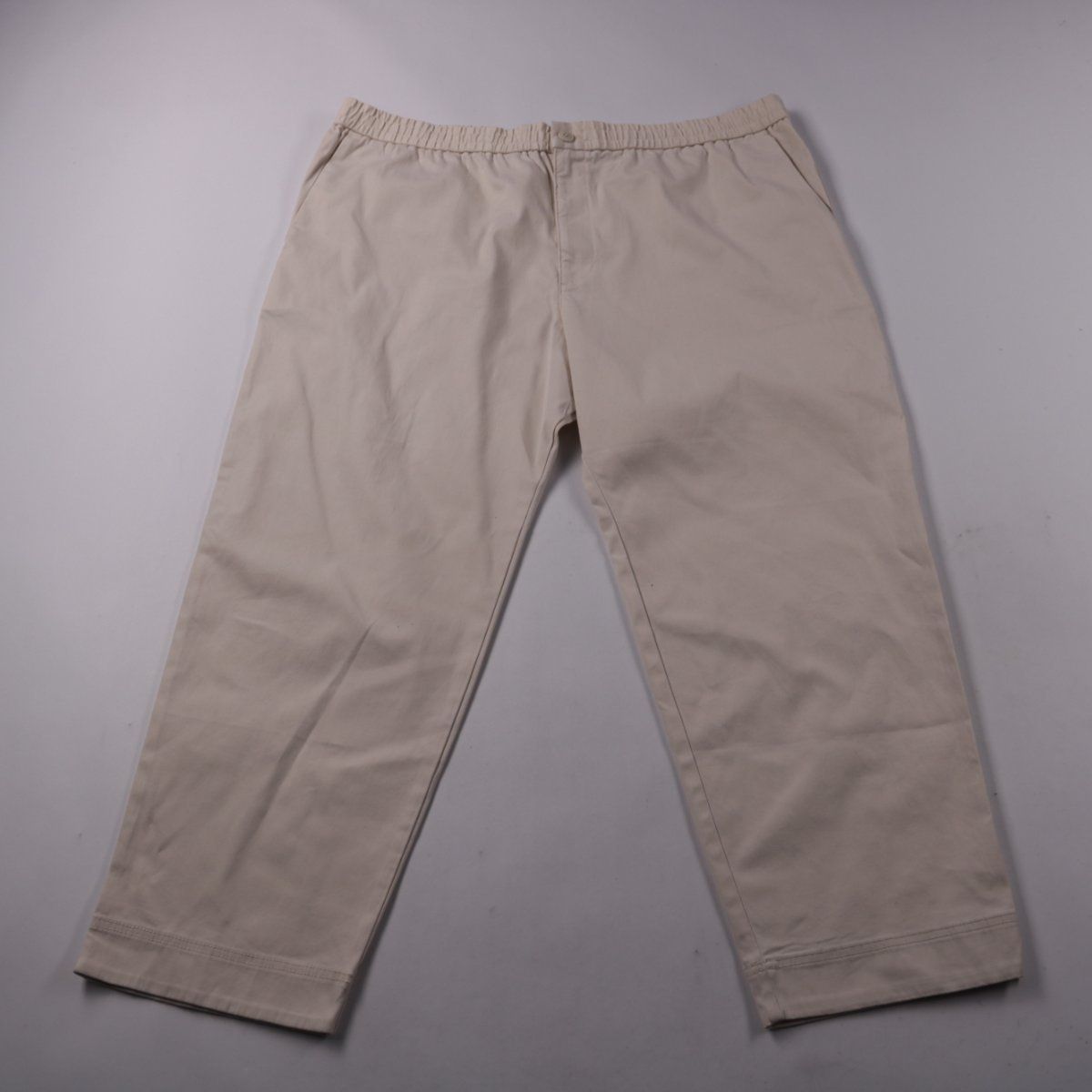 Мужские брюки M&S светло-бежевого цвета с поясом на резинке. Подойдут для повседневной носки и спокойных прогулок в тёплую и демисезонную погоду. Эластичный пояс делает посадку более комфортной.