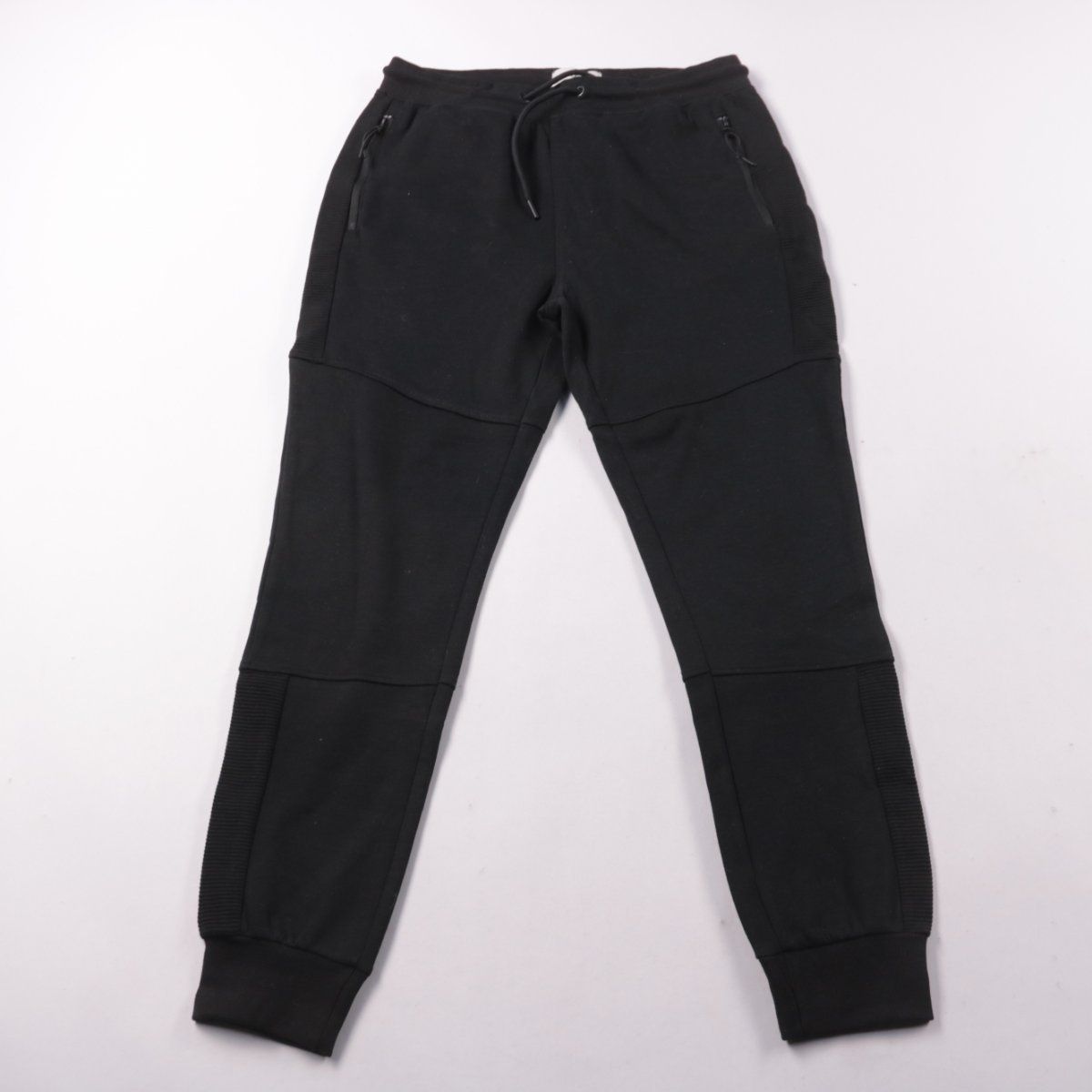 Спортивные брюки C&A чёрного цвета с поясом на шнурке и манжетами по низу. Подойдут для тренировок, прогулок и повседневной носки. Практичный плюс — карманы на молнии для мелочей.