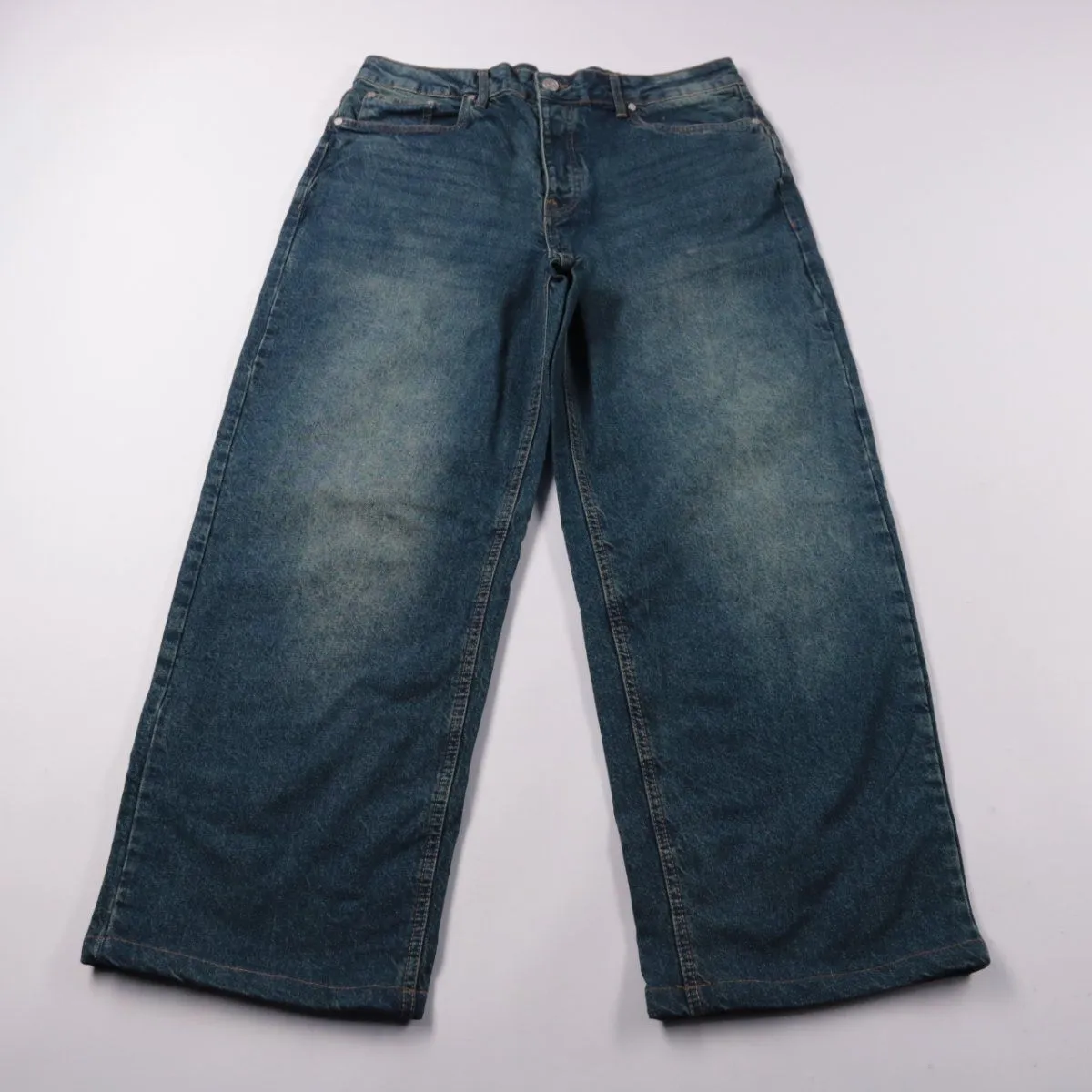 Мужские джинсы BoohooMAN из плотного синего денима с лёгким эффектом выварки. Подойдут на каждый день и для casual-образов с кроссовками или ботинками. Натуральный хлопок хорошо дышит и прост в уходе.