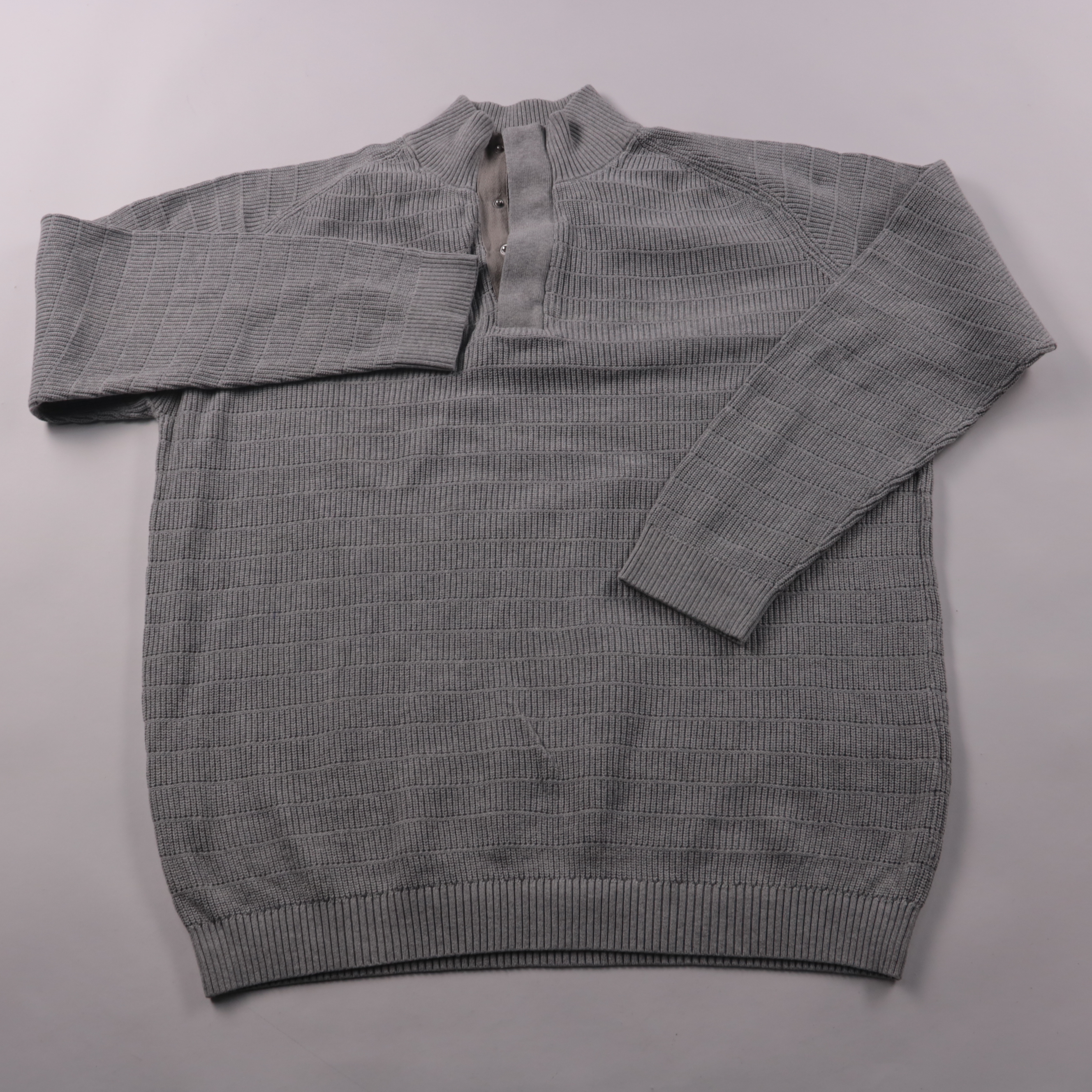 Мужской джемпер S.Oliver серого цвета с фактурной вязкой и воротником-стойкой на пуговицах. Подойдёт для повседневной носки в прохладную погоду, хорошо смотрится с джинсами и чиносами. Хлопковый материал комфортный и простой в уходе.