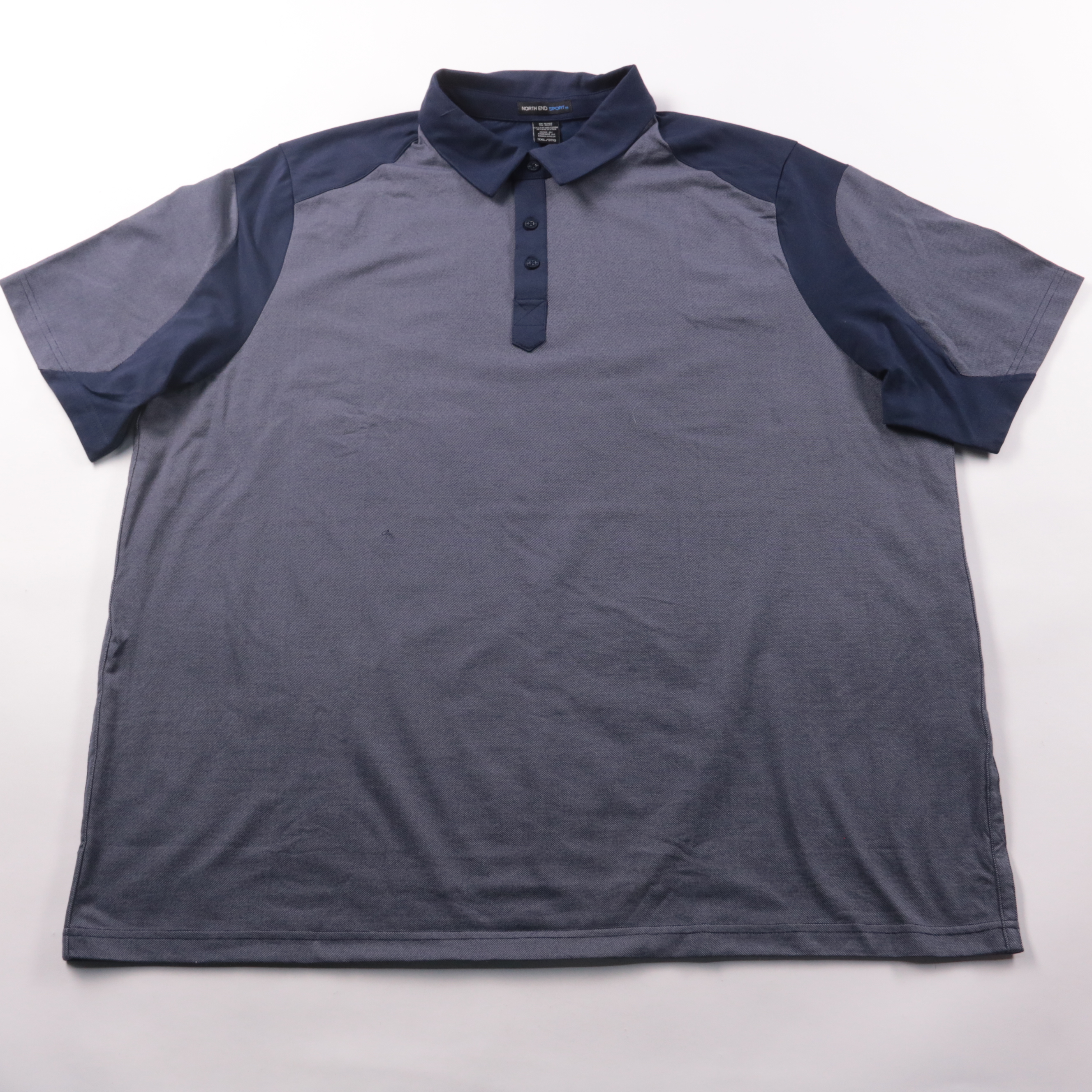 Мужское поло North End Sport в сине-серой расцветке с коротким рукавом и застёжкой на пуговицы. Подойдёт для повседневной носки и активного отдыха в тёплую погоду. Смесовая ткань (хлопок с полиэстером) практична в уходе и меньше мнётся.