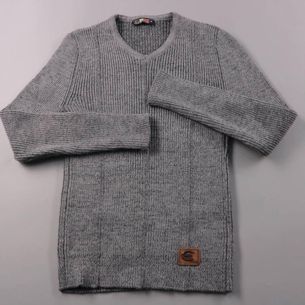 Мужской серый вязаный джемпер Ce&Ce с V-образным вырезом и фактурной резинкой. Подойдёт для повседневной носки и офиса в прохладную погоду, хорошо сочетается с джинсами и брюками. Смесь шерсти и акрила делает его тёплым и менее требовательным в уходе.