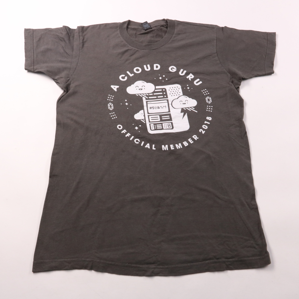 Футболка Tultex из 100% хлопка в тёмно-сером цвете с принтом «A Cloud Guru / Official Member 2018». Подойдёт для повседневной носки и как базовый слой под худи или куртку. Практична тем, что ткань предварительно усажена и хорошо держит форму после стирок.