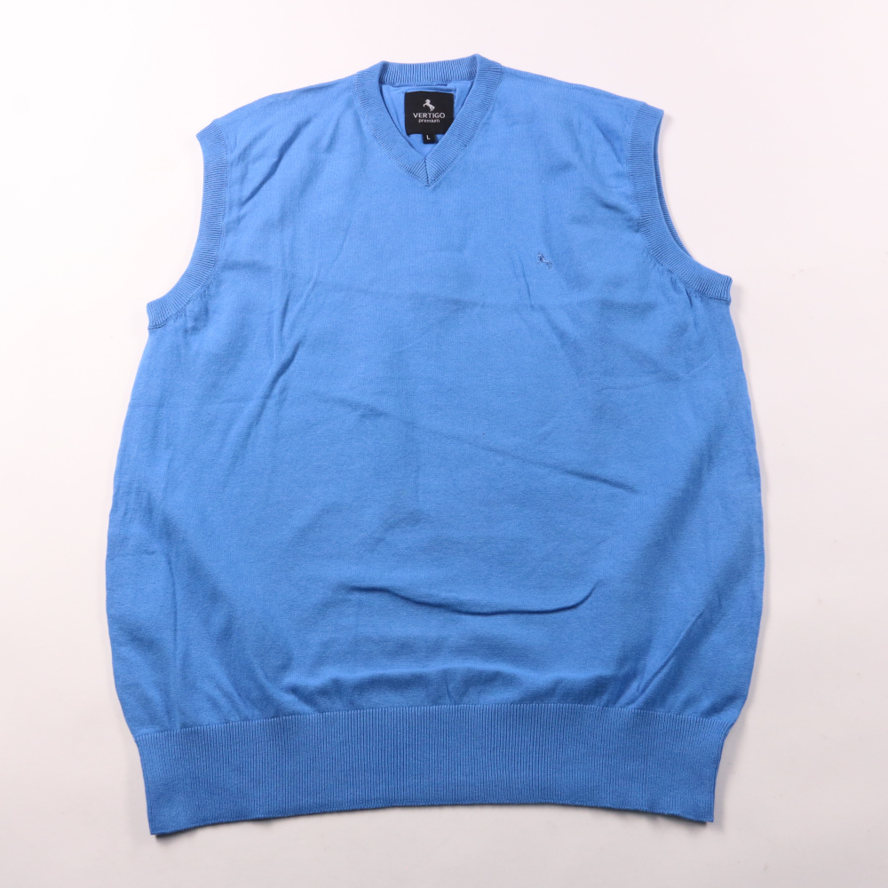 Мужской трикотажный жилет Vertigo Premium голубого цвета с V‑образным вырезом. Подойдёт для офиса и повседневных образов поверх рубашки или лонгслива в прохладную погоду. Смесь хлопка с нейлоном меньше мнётся и лучше держит форму.