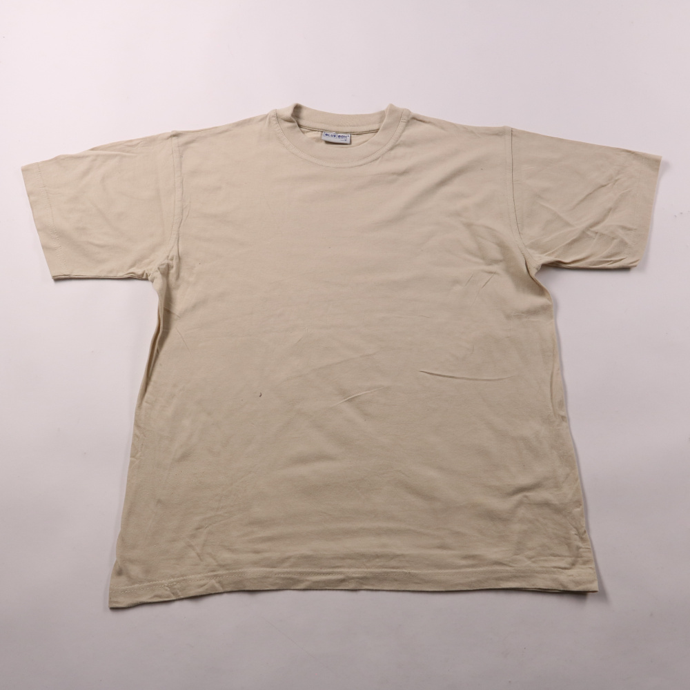 Мужская футболка Blue Box в бежевом цвете, базовая модель без принта. Подойдёт для повседневной носки дома и на прогулки, легко сочетается с джинсами и шортами. Натуральный хлопок хорошо дышит и комфортен в жару.