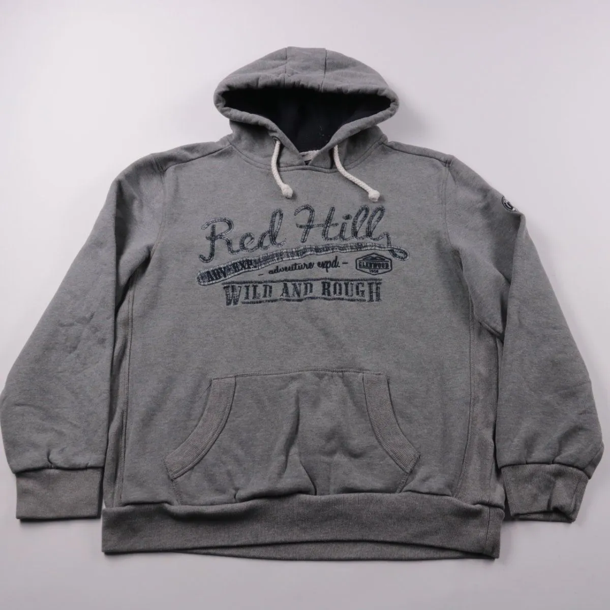 Мужское худи Southern серого цвета с капюшоном, шнурком и карманом-кенгуру, спереди принт Red Hills. Подойдёт для повседневной носки и прогулок в прохладную погоду. Мягкая подкладка и плотный трикотаж хорошо сохраняют тепло и комфортно сидят.