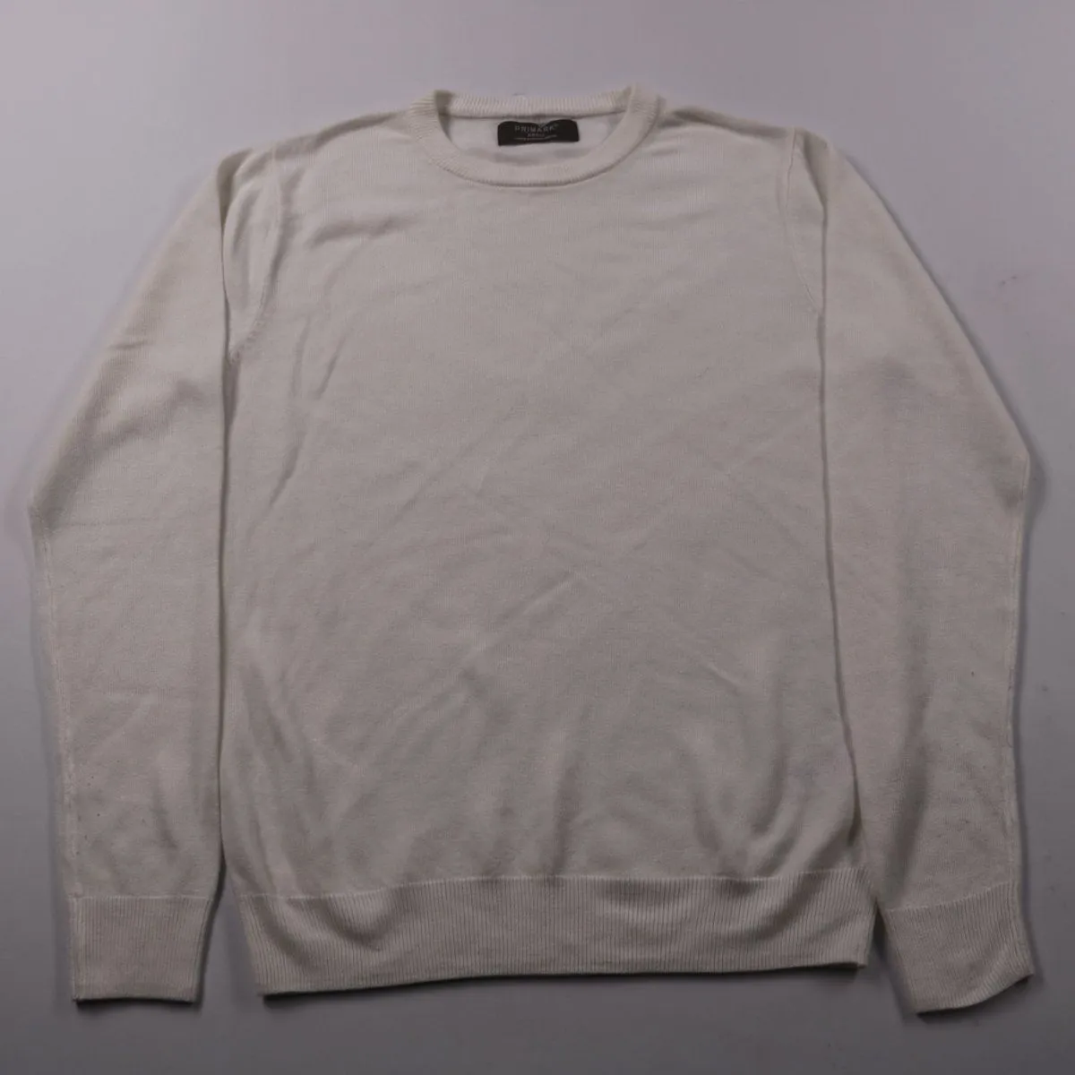 Мужской свитшот Primark в молочно-белом цвете с круглым вырезом и мягкими манжетами/поясом. Подойдёт для повседневной носки и как базовый слой в прохладную погоду. Практичный вариант: легко сочетать с джинсами и брюками благодаря нейтральному оттенку.
